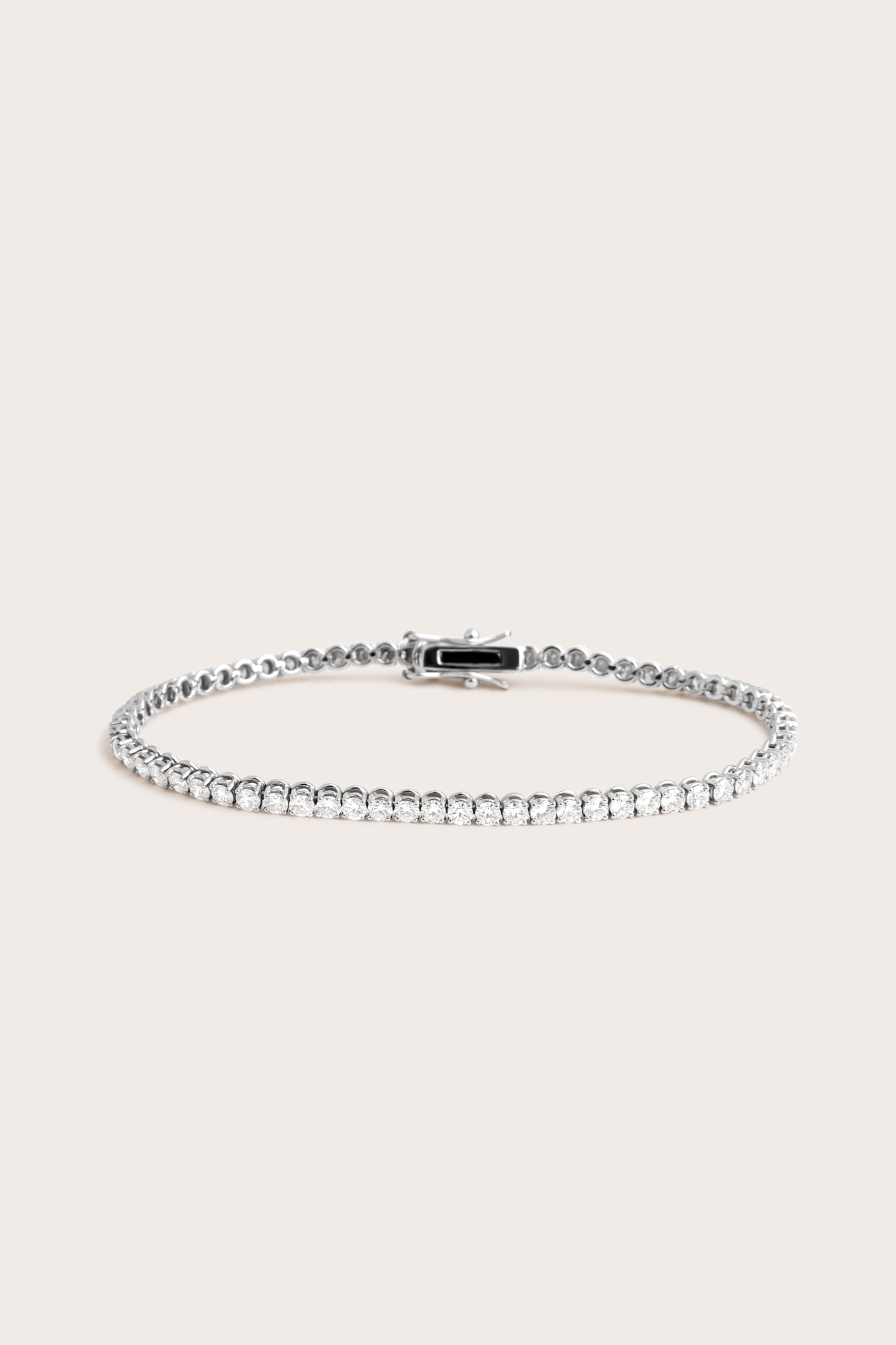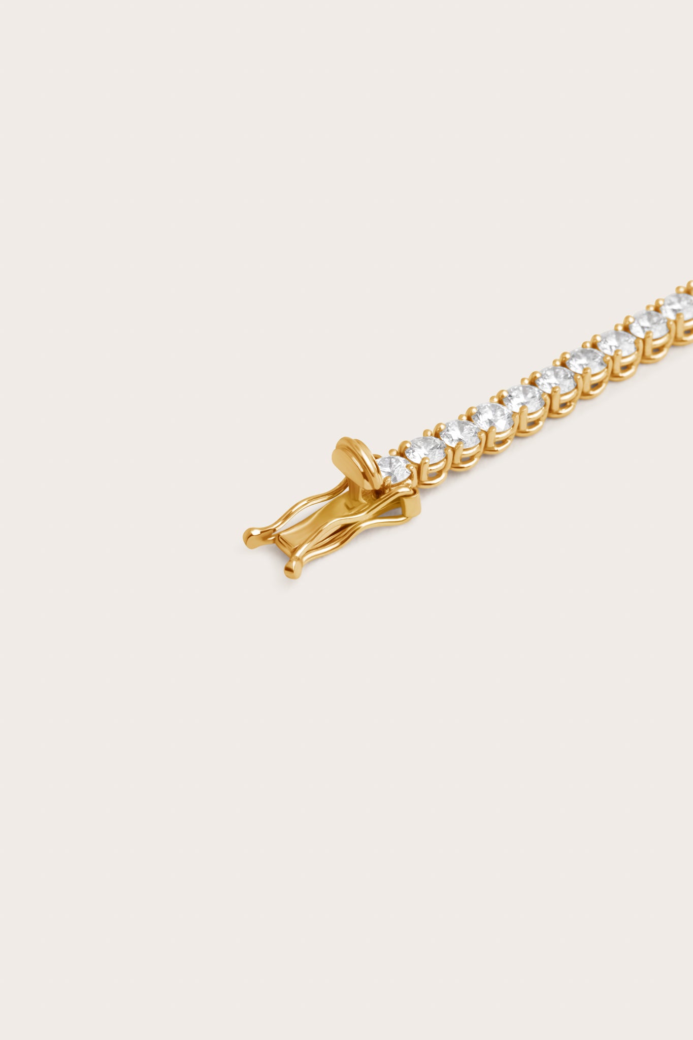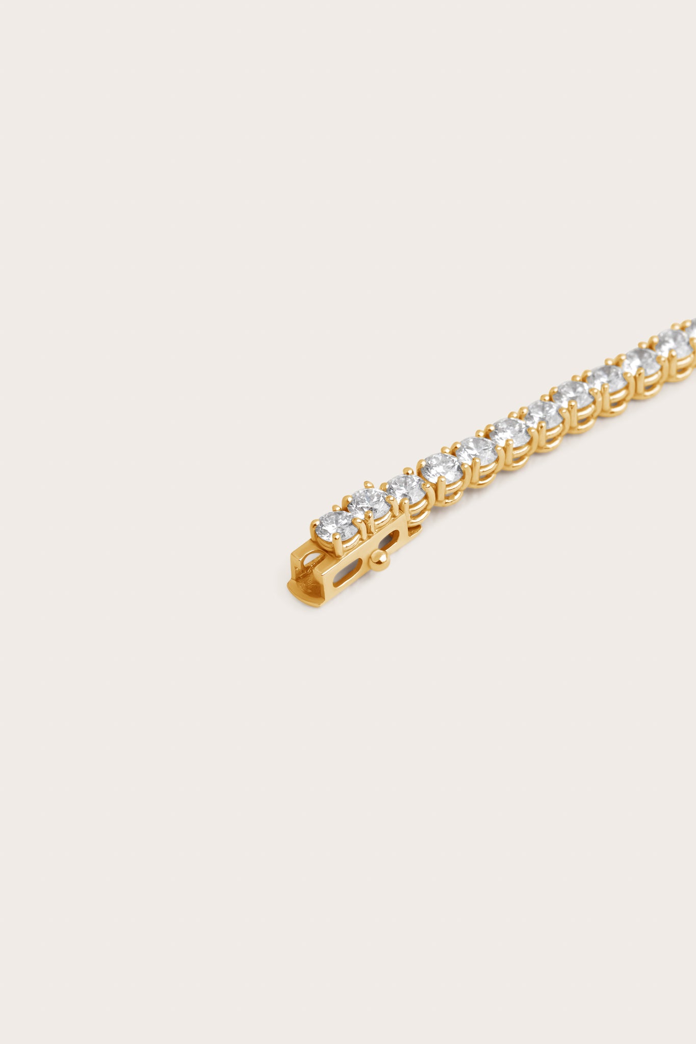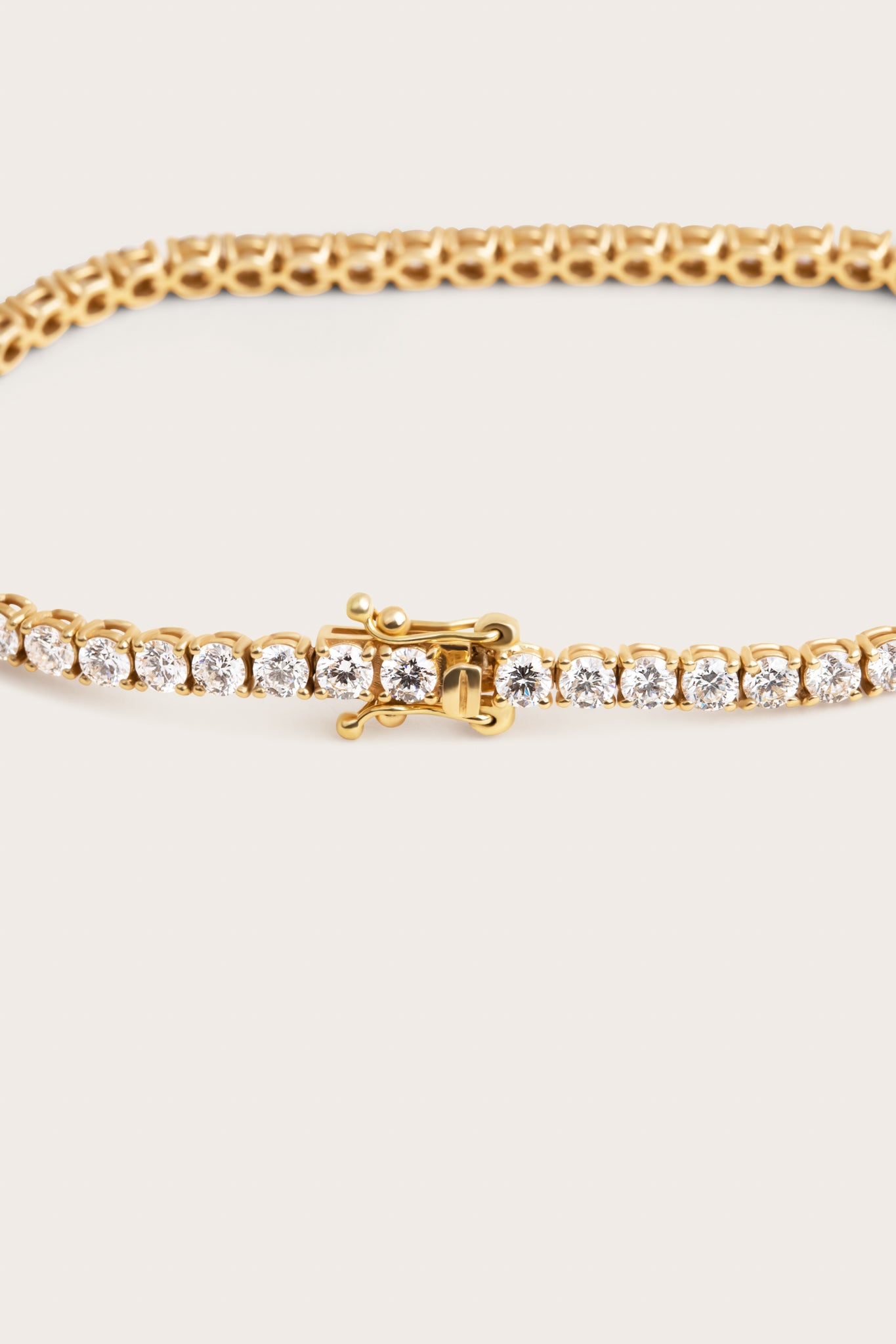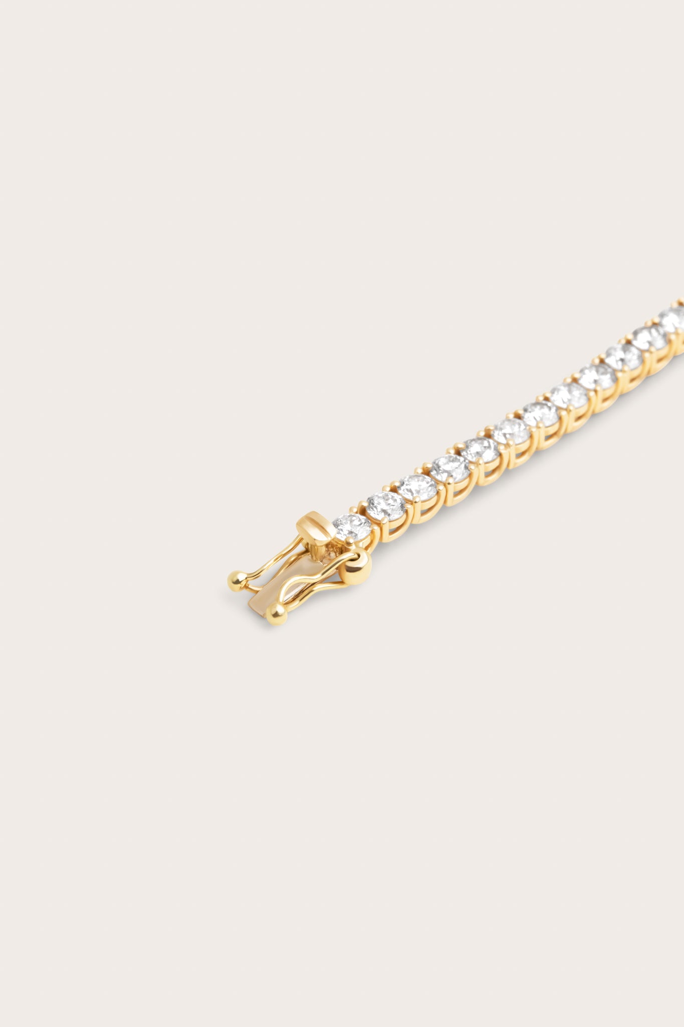 The cornerstone of every jewelry collection, the exclusive and classic tennis bracelet with a seamless row of sustainably created diamonds connected by a thin, precious solid gold chain. Fastened with a push lock to ensure security without compromising the classic design. Our tennis bracelets are available in three different sizes depending on what sized diamonds you wish to wear.
