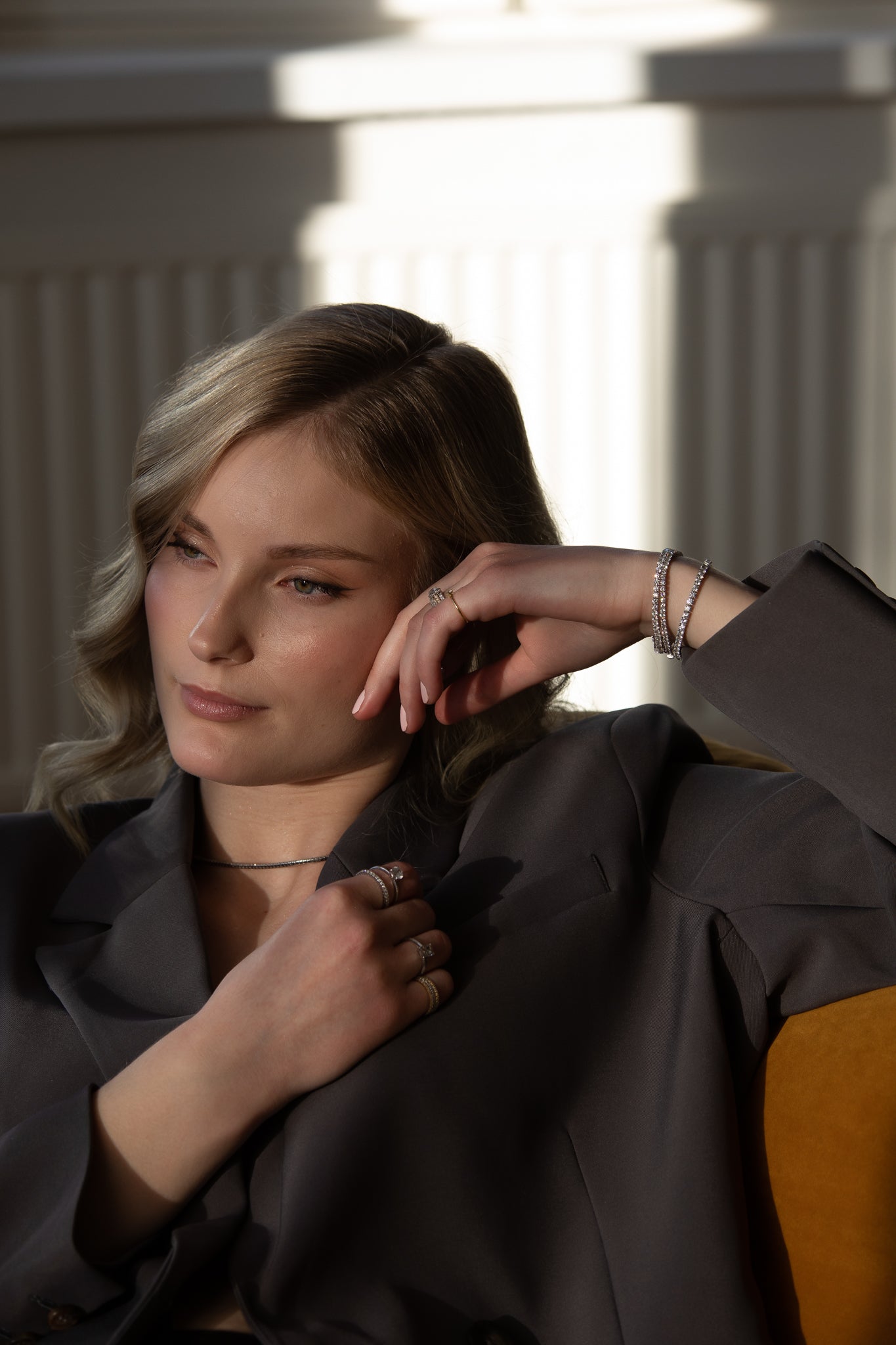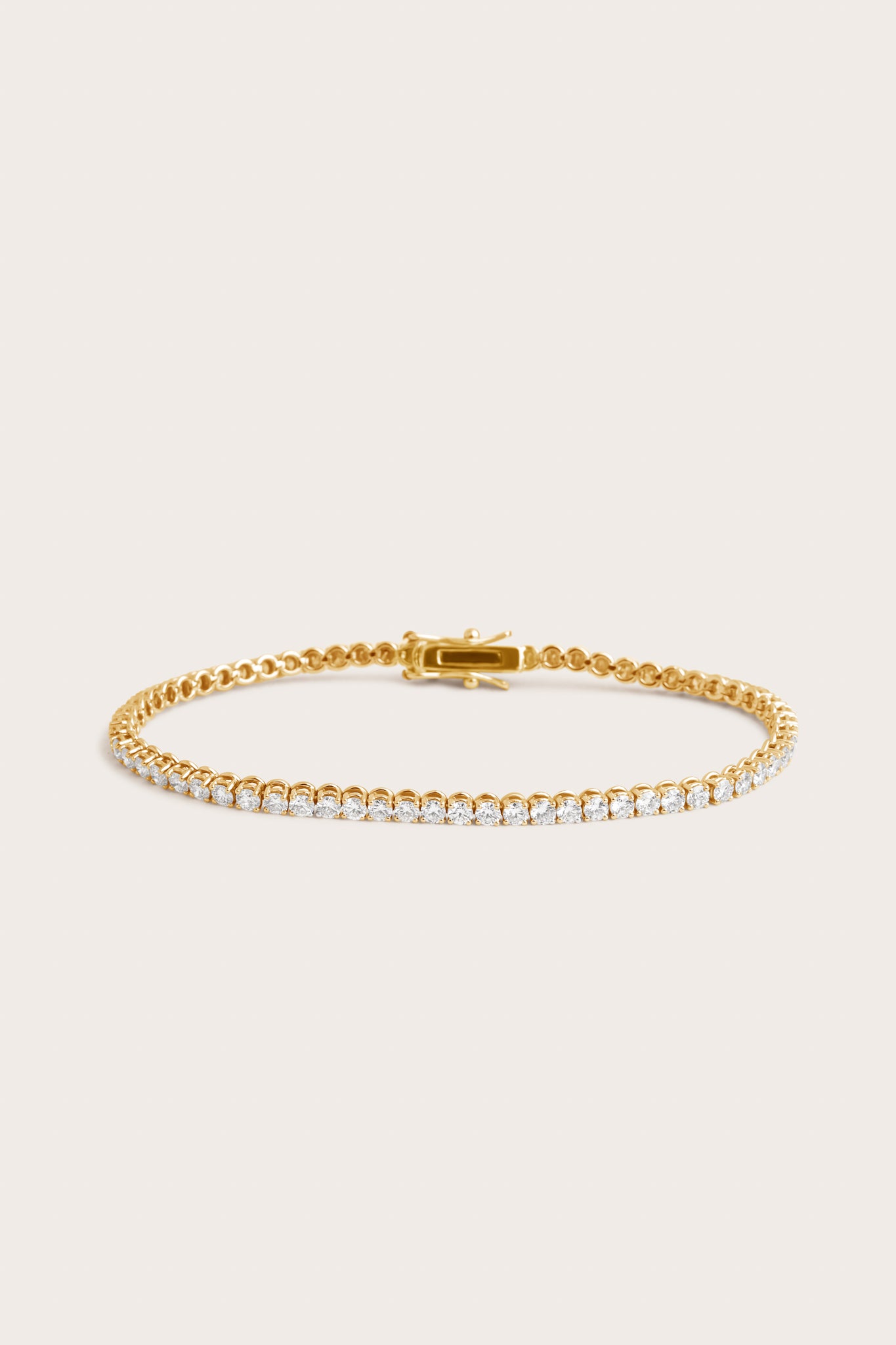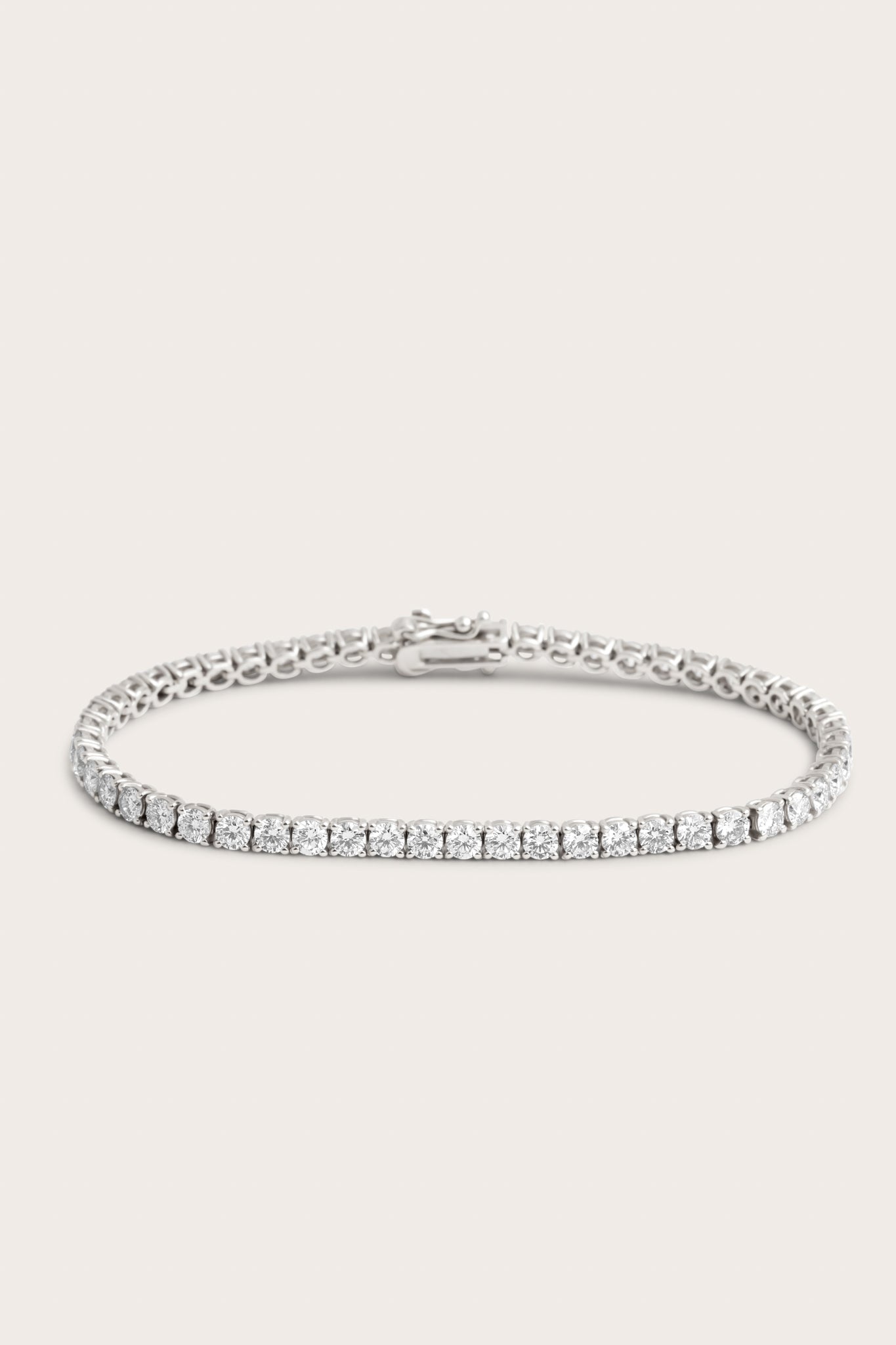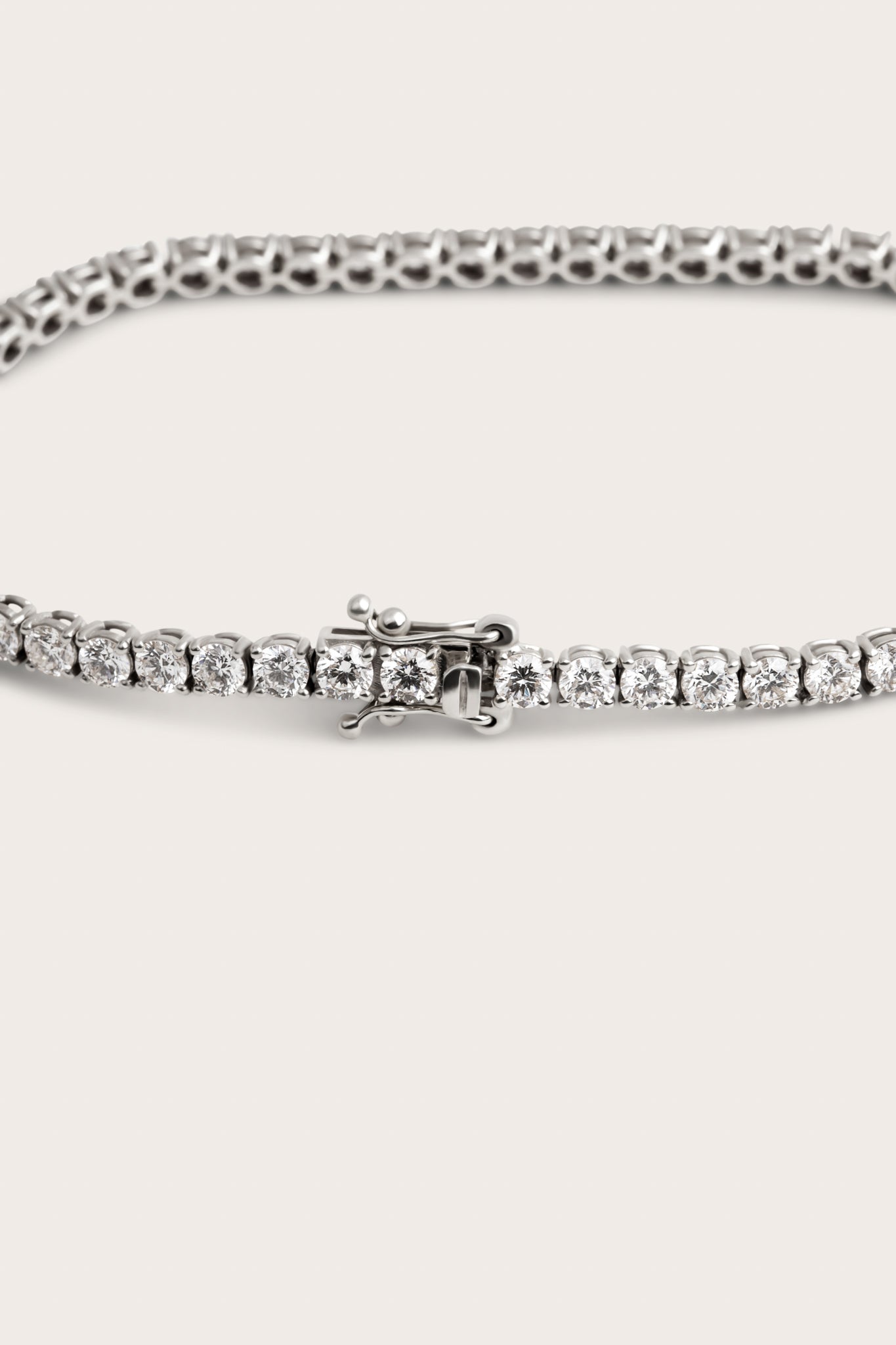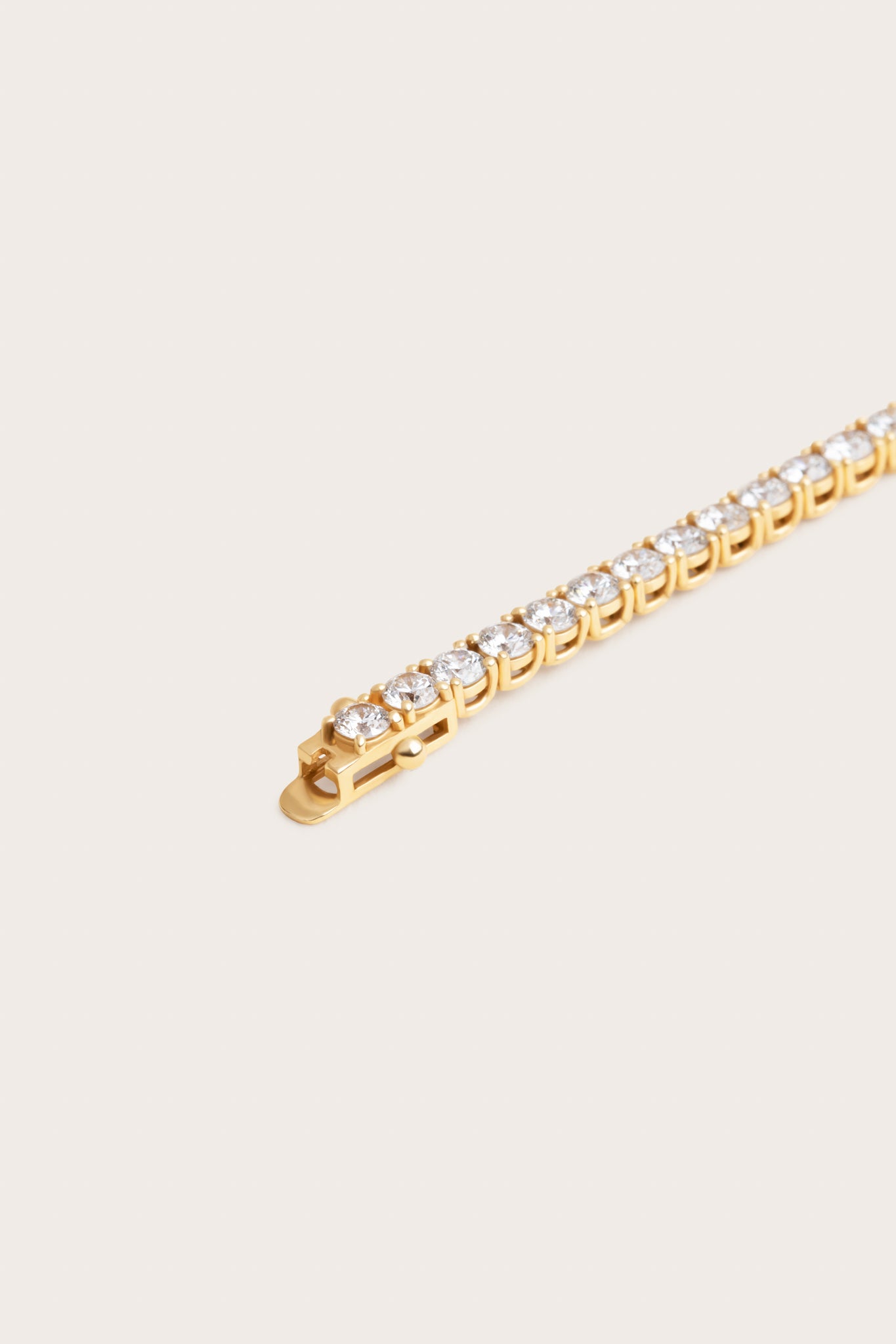 The cornerstone of every jewelry collection, the exclusive and classic tennis bracelet with a seamless row of sustainably created diamonds connected by a thin, precious solid gold chain. Fastened with a push lock to ensure security without compromising the classic design. Our tennis bracelets are available in three different sizes depending on what sized diamonds you wish to wear.