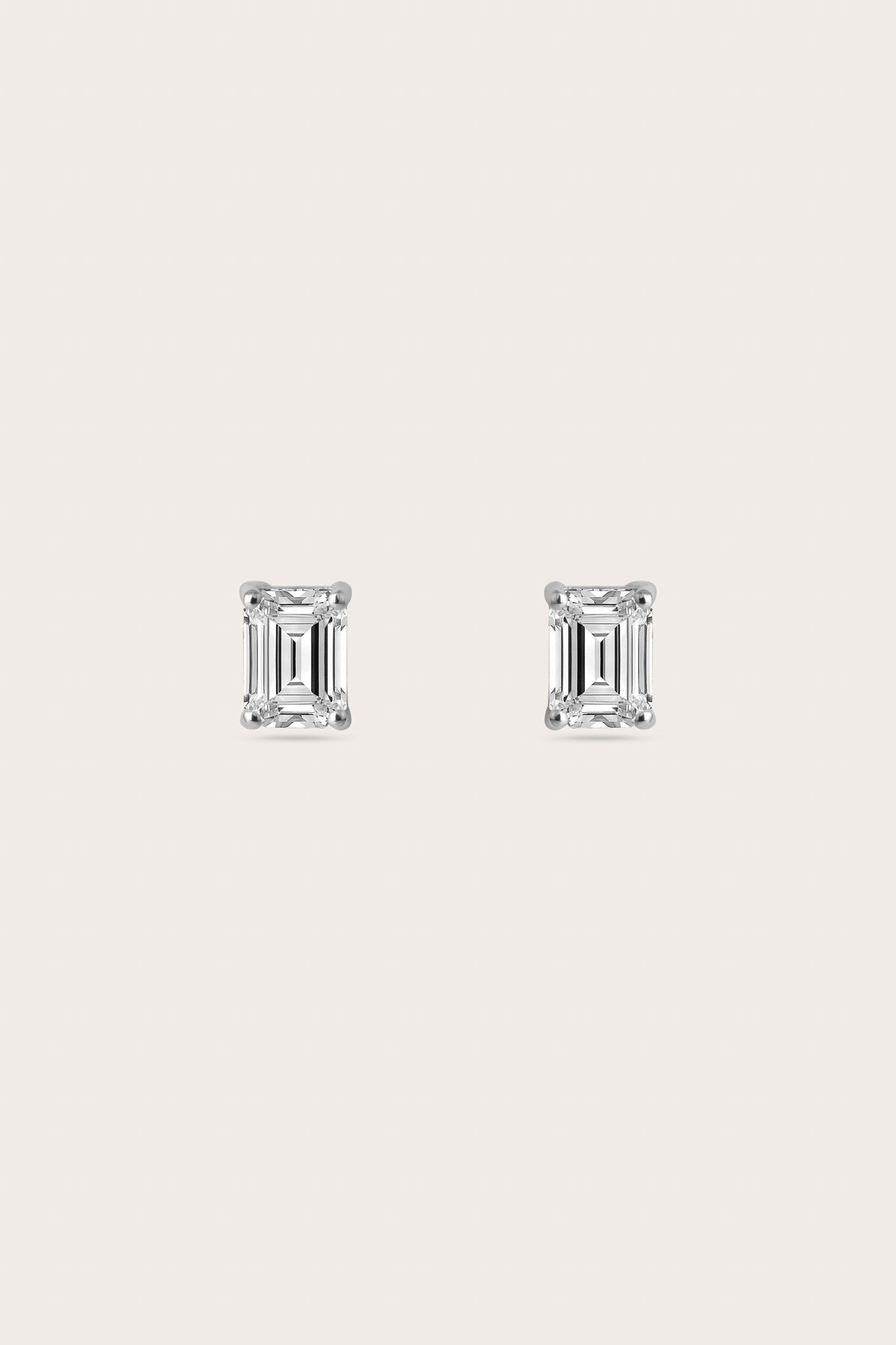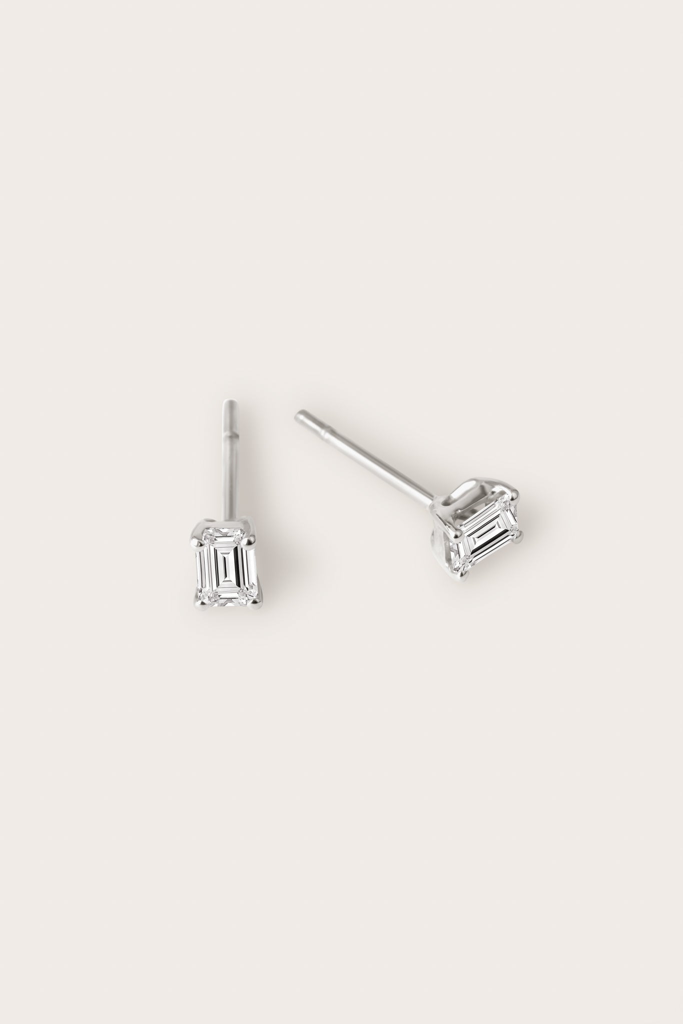 Simplicity, timelessness and sophistication taking shape as our beautiful Emerald Studs with sustainably created emerald-cut diamonds. Our studs have rectilinear, step cut facets that shift focus from brilliance to clarity, creating a clean, open look pronounced in our high quality diamonds with high color and clarity grades. If you're thinking of investing in your first pair of diamond earrings, the classic diamond studs are perfect to start with.