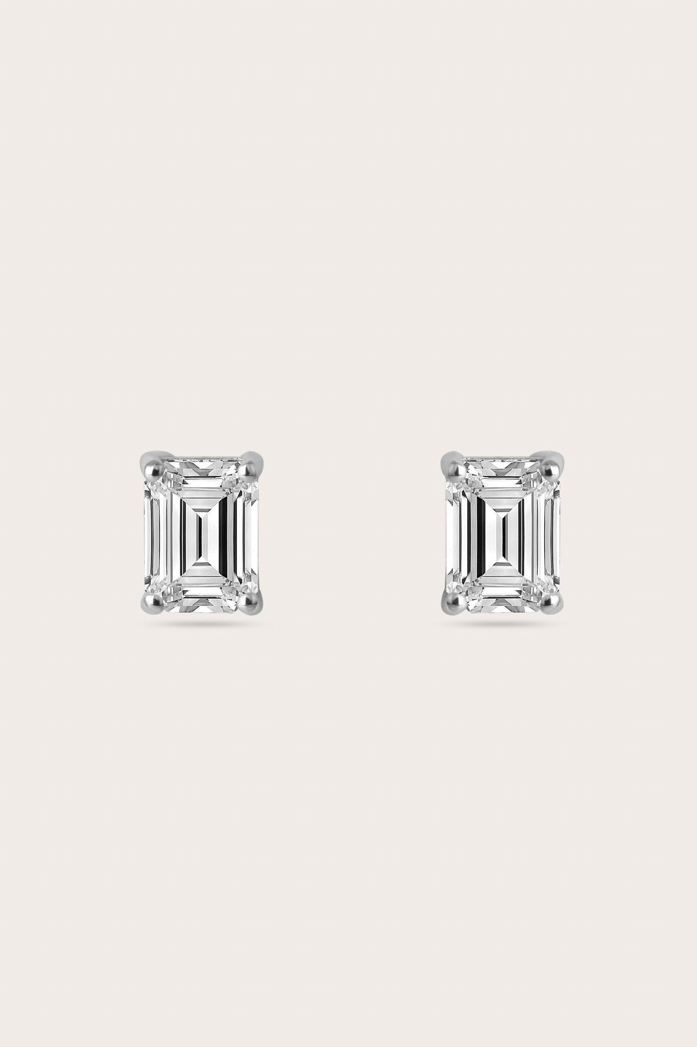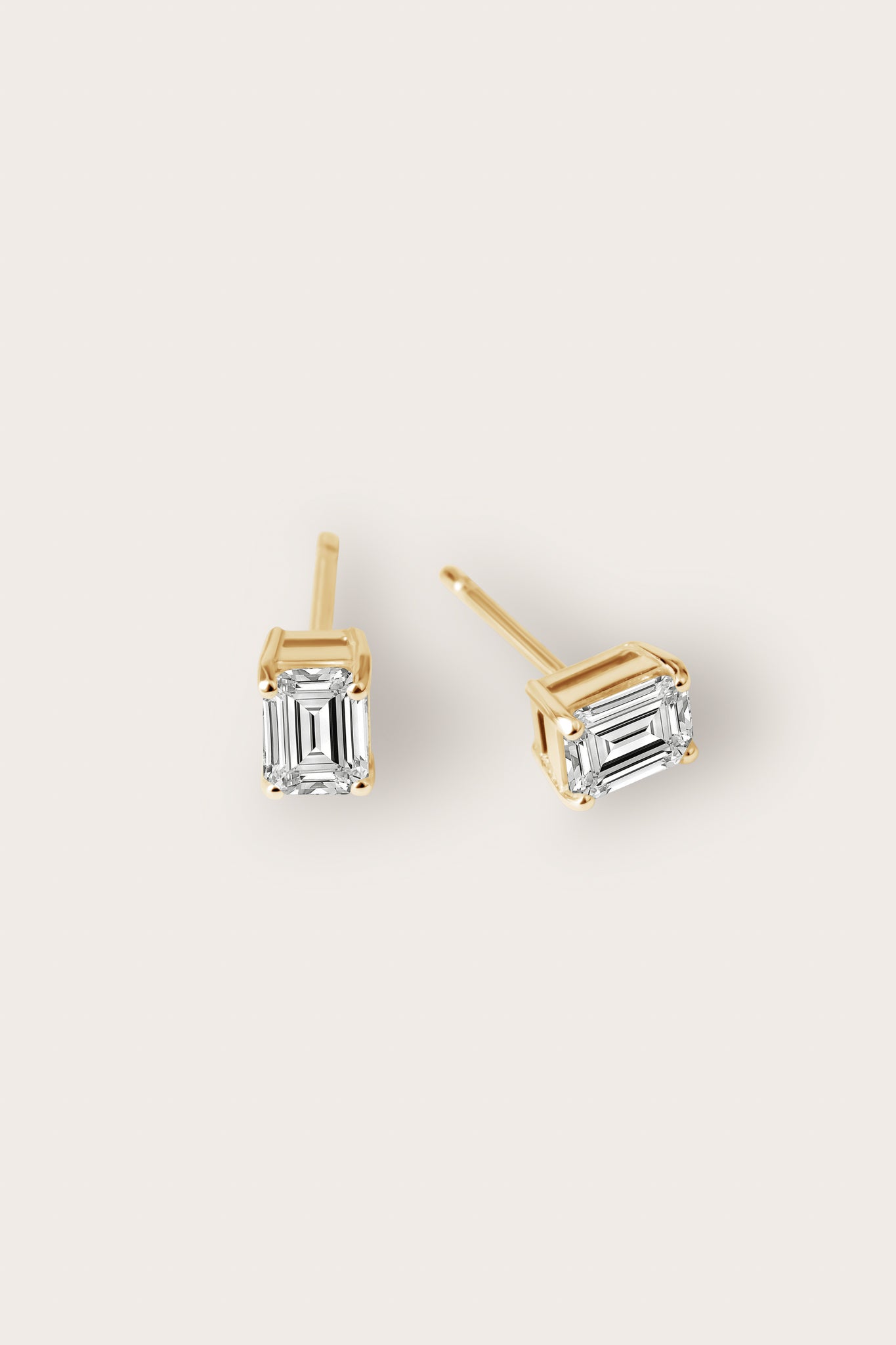 Simplicity, timelessness and sophistication taking shape as our beautiful Emerald Studs with sustainably created emerald-cut diamonds. Our studs have rectilinear, step cut facets that shift focus from brilliance to clarity, creating a clean, open look pronounced in our high quality diamonds with high color and clarity grades. If you're thinking of investing in your first pair of diamond earrings, the classic diamond studs are perfect to start with.