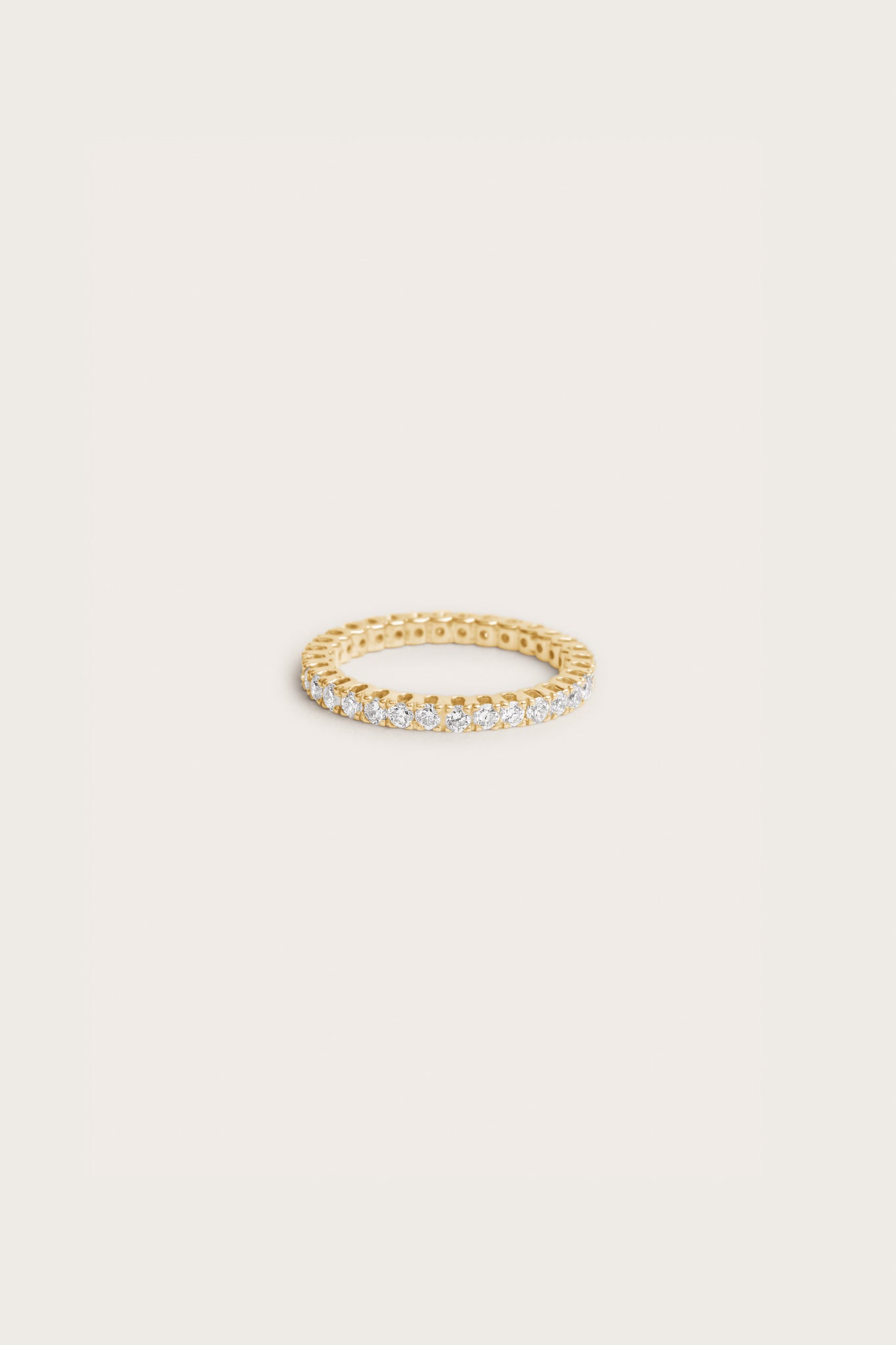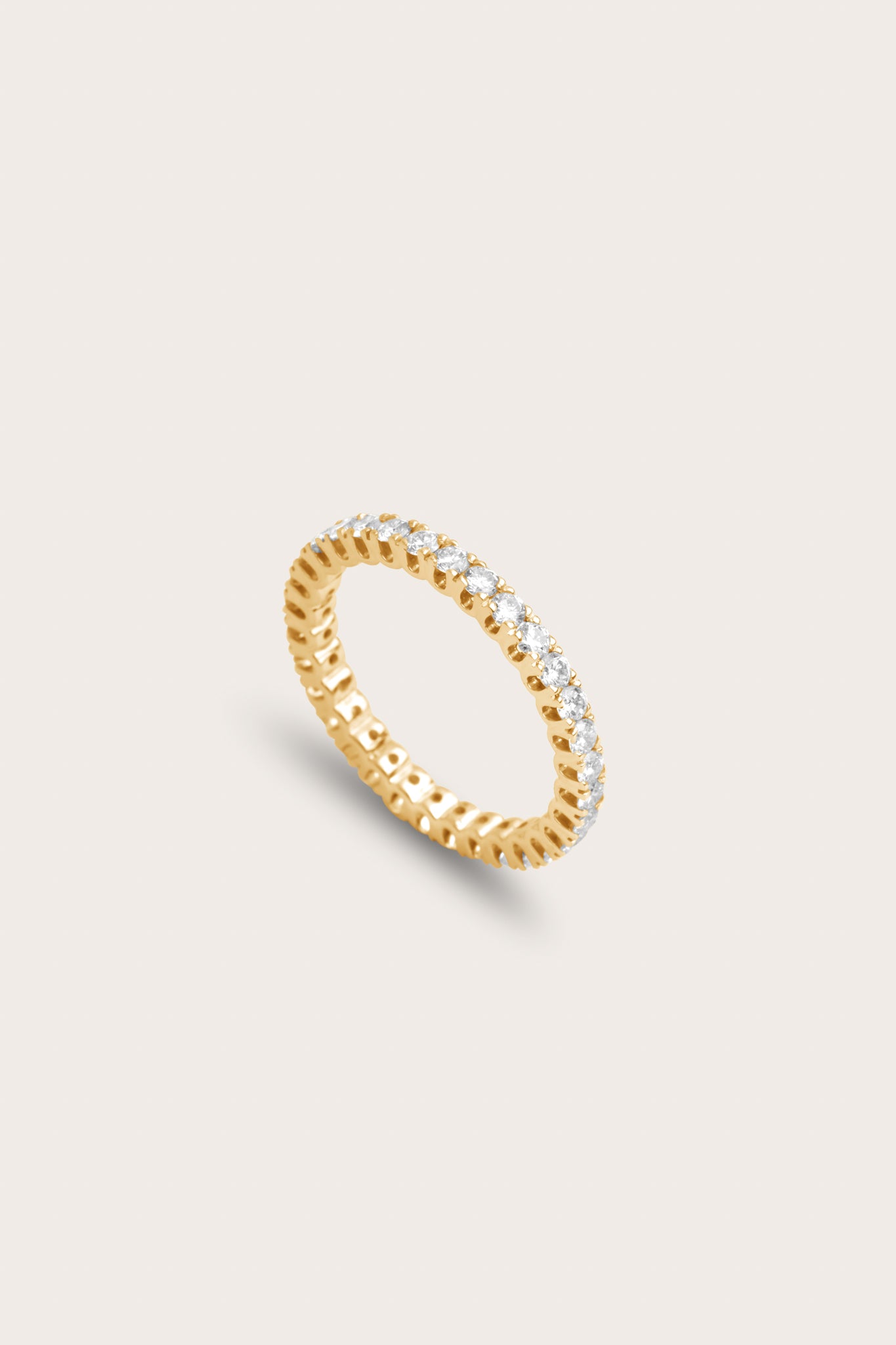 The Eternity Ring Petite offers delicate elegance with sparkling diamonds set in a timeless 18K gold band, creating a modern yet classic heirloom.