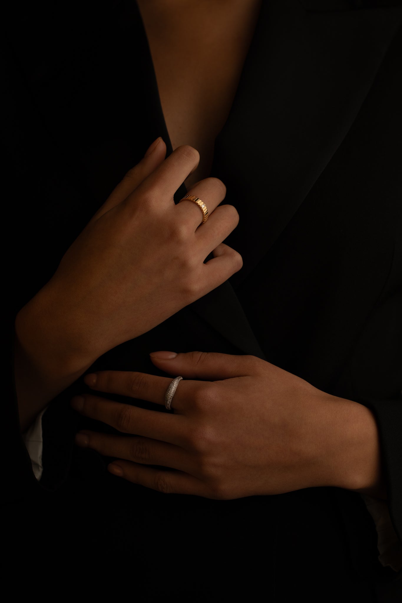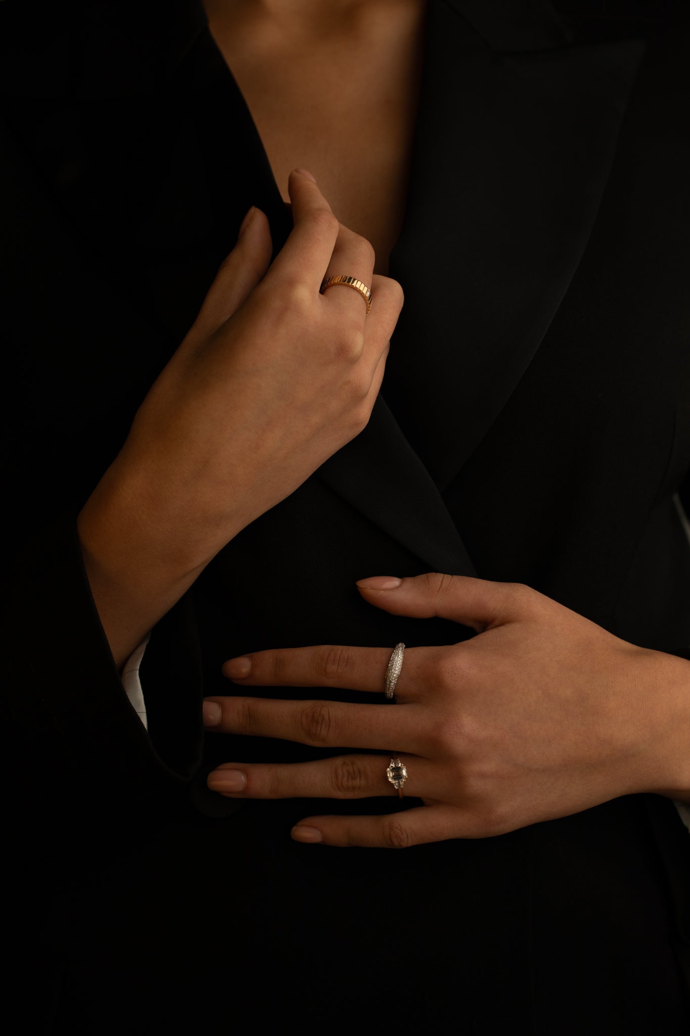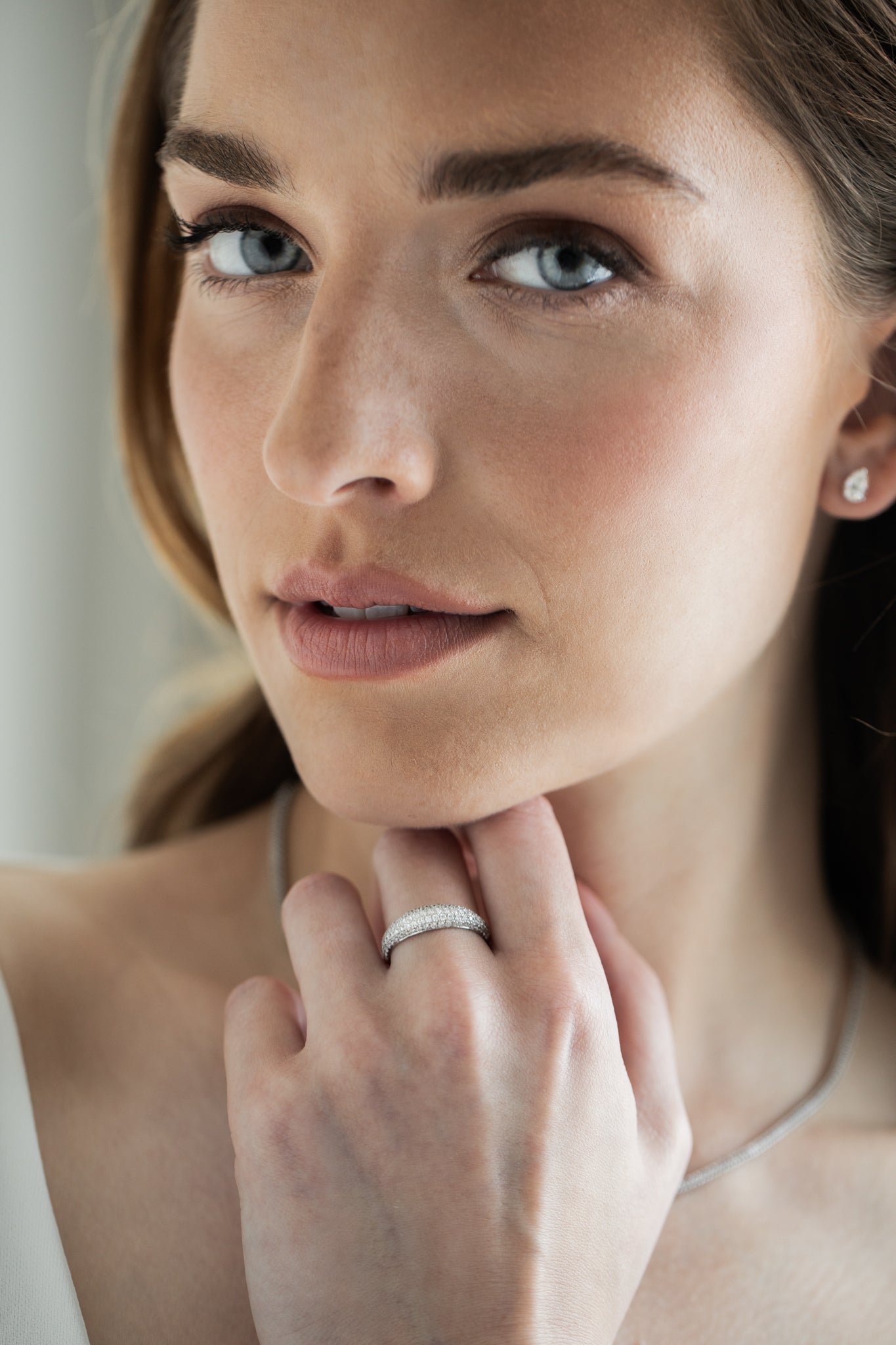 The Pavé Dome Ring is an instant classic and an everyday luxury favorite with the best possible quality and durability. With a curved inner surface, the ring is not only bold and glamorous but also comfortable to wear.