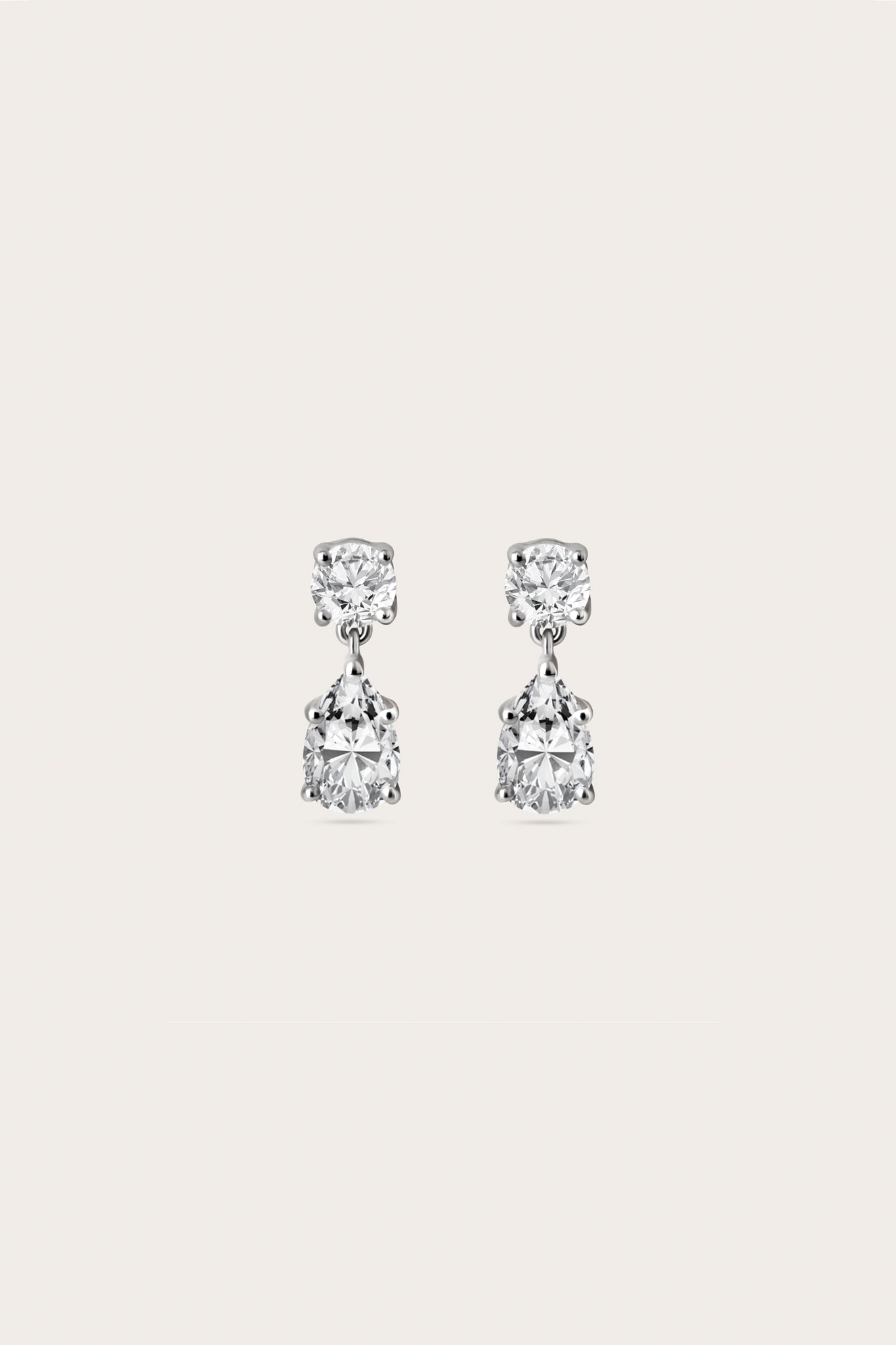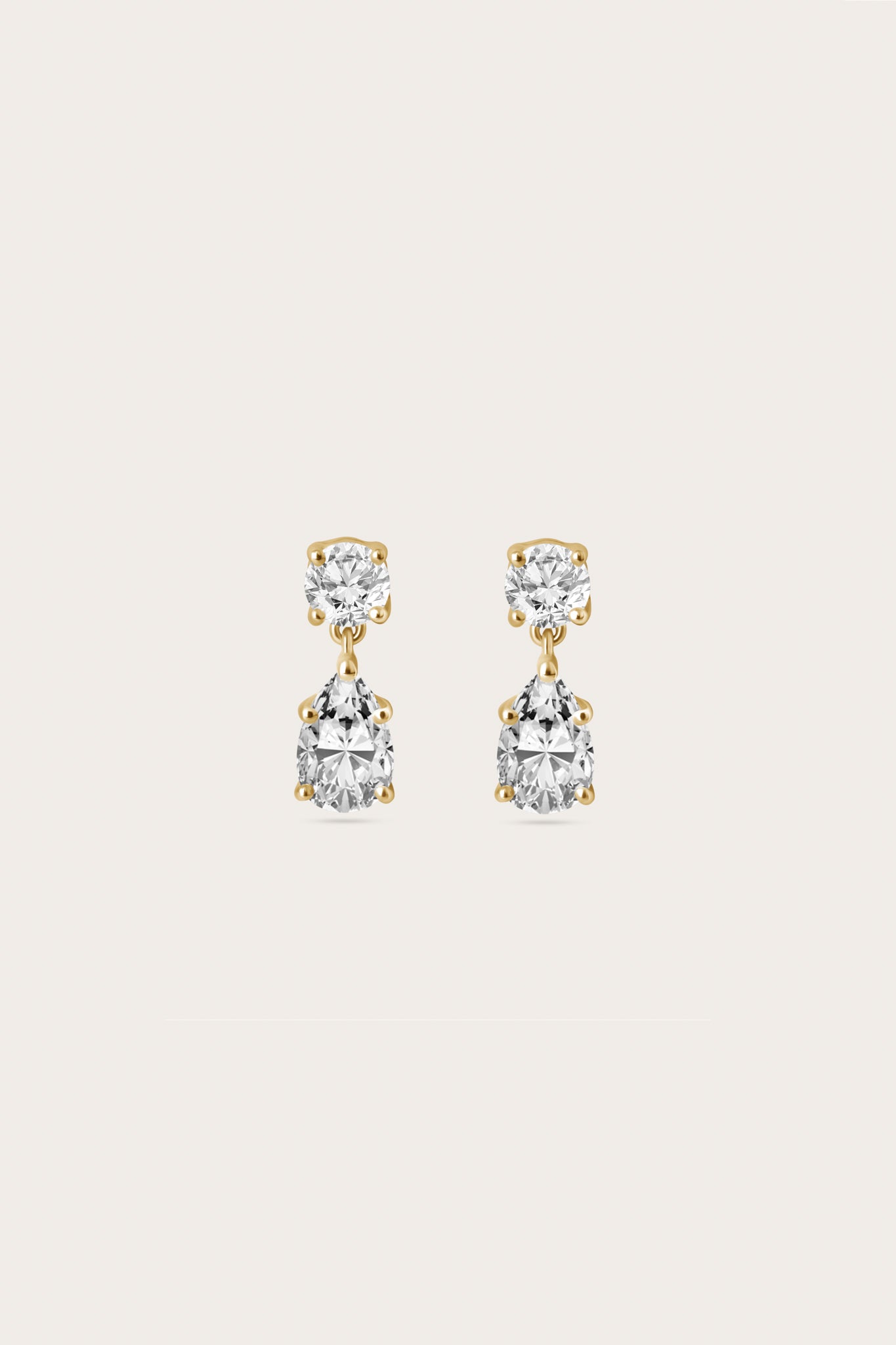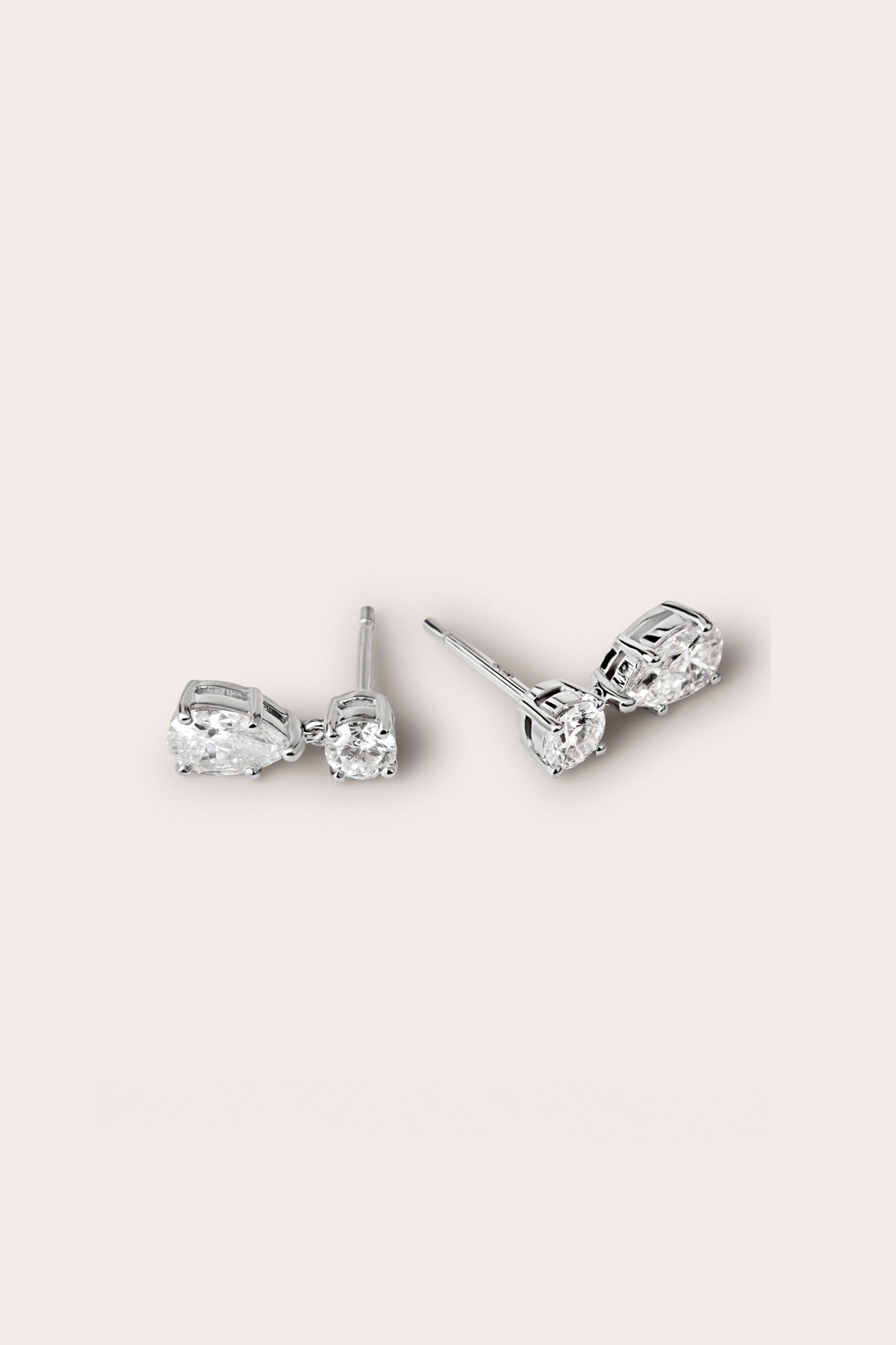 Elevate your style with the Pear Drop Studs, showcasing a perfect balance of round- and pear-cut diamonds in a sleek 18K gold setting, ideal for both special occasions and everyday luxury.