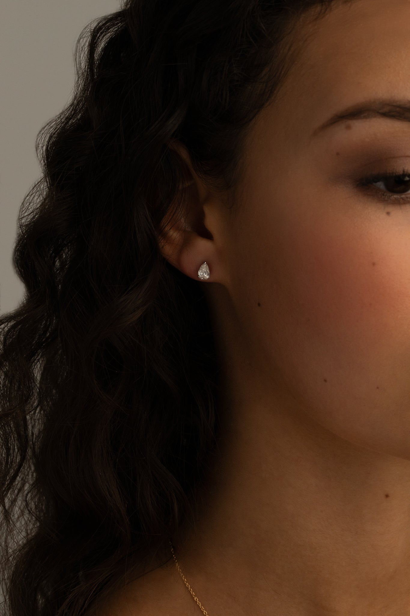 Bold and unique, the Pear Studs embody the combination of playfulness and sophistication. With a rounded end and tapered shape, the teardrop-resembling diamond looks stunning even in daintier sizes. If you're thinking of investing in your first pair of diamond earrings, the classic diamond studs are perfect to start with.