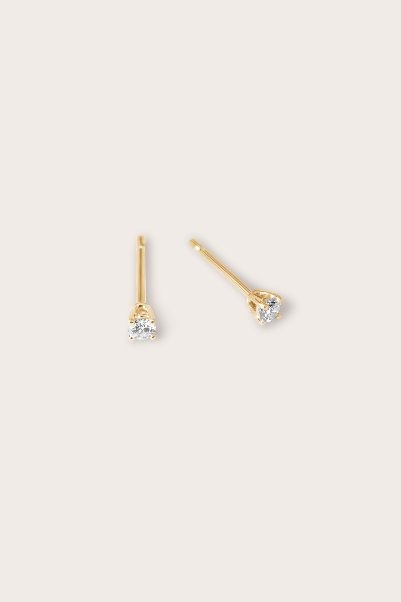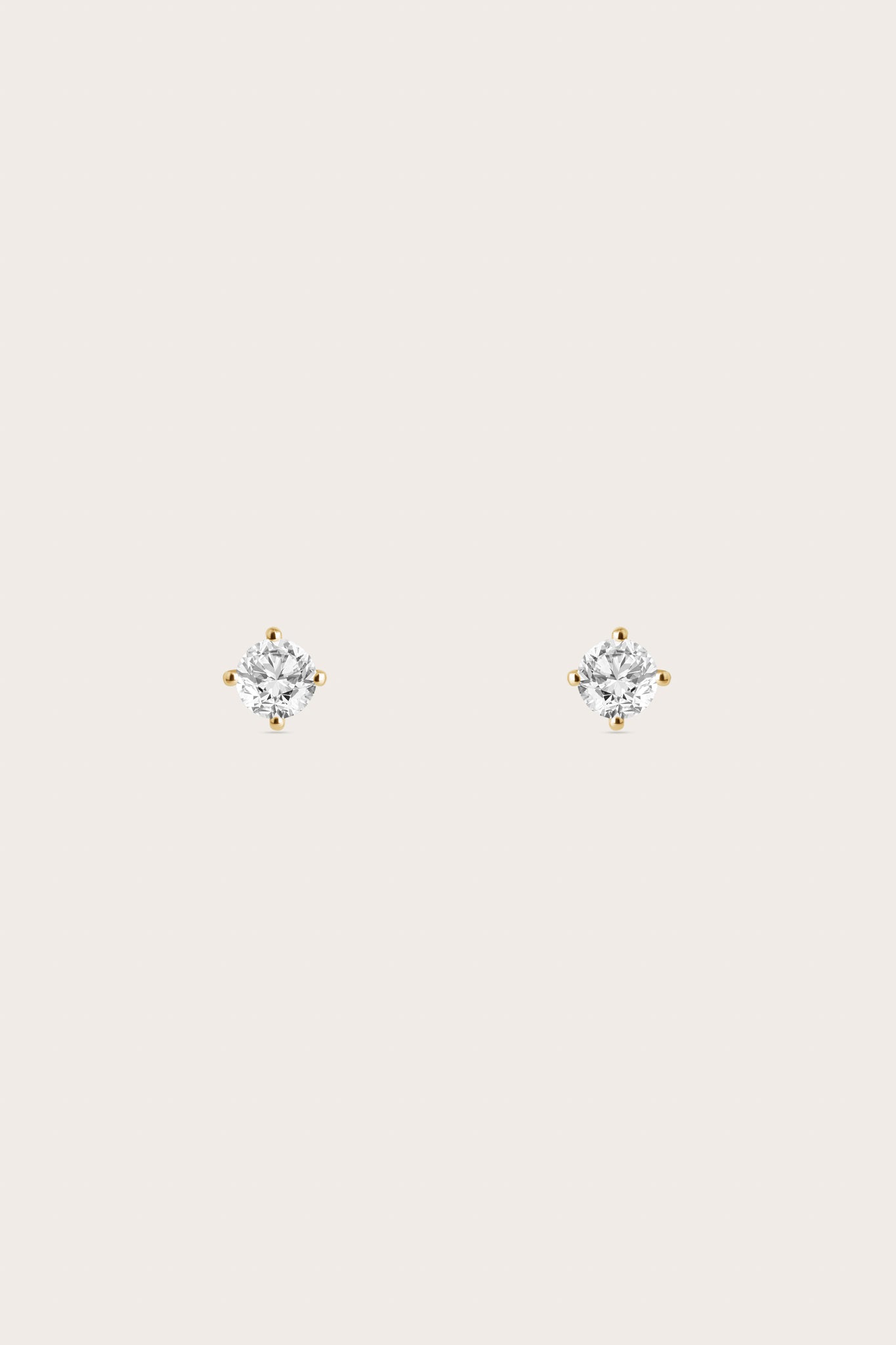 The Round Studs Petite have brilliant-cut 0.05-carat diamonds each with a 4-prong setting. Created with 18K solid gold, they have a traditional stud fastening for easy and secure use. These earrings catch the light from different angles making sure the diamonds sparkle as you go.