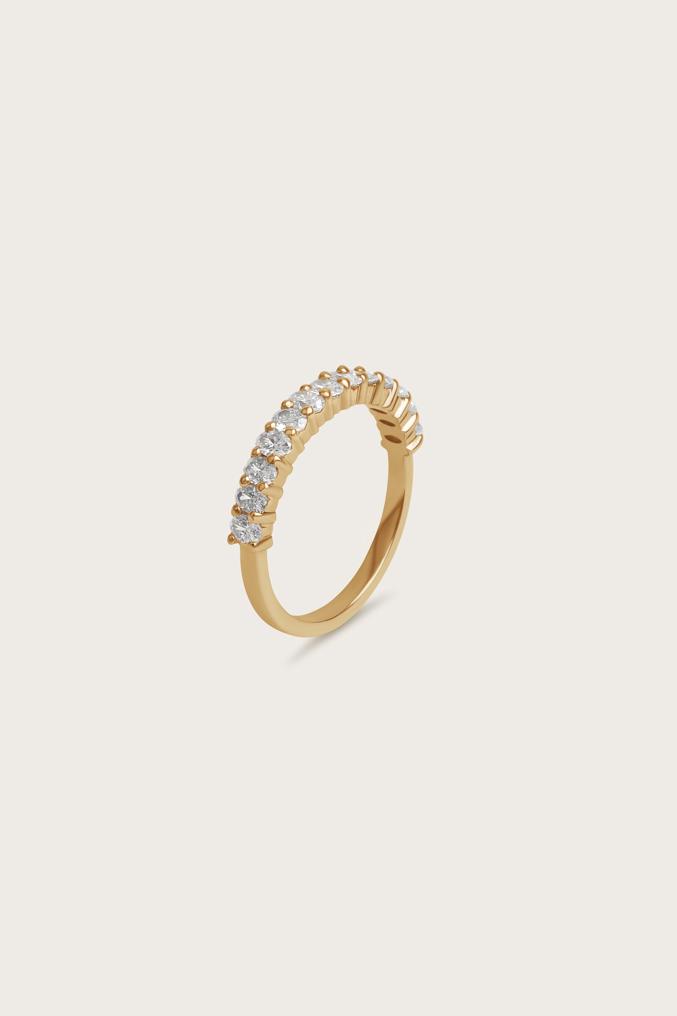 The Oval Half Eternity Ring Petite is a lighter, more delicate take on one of our most loved designs. A row of elongated oval lab-grown diamonds creates soft brilliance while keeping the profile elegant and balanced.