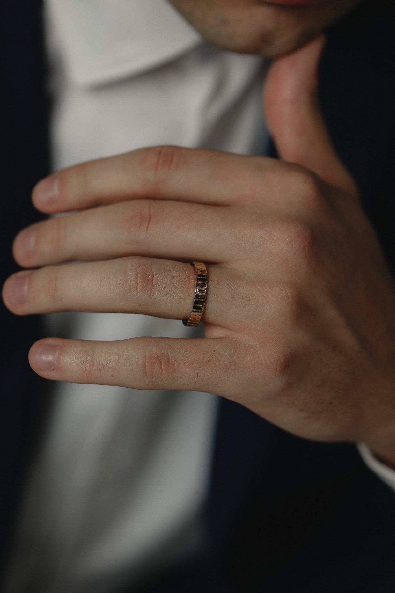 Designed with intention and sculpted presence, this collection embodies strength in its most refined form. Each ring balances weight and proportion, merging timeless craftsmanship with modern character. From structured ribbing to brushed textures and bold diamond details, every design carries quiet confidence and enduring beauty — pieces made to be worn for life.