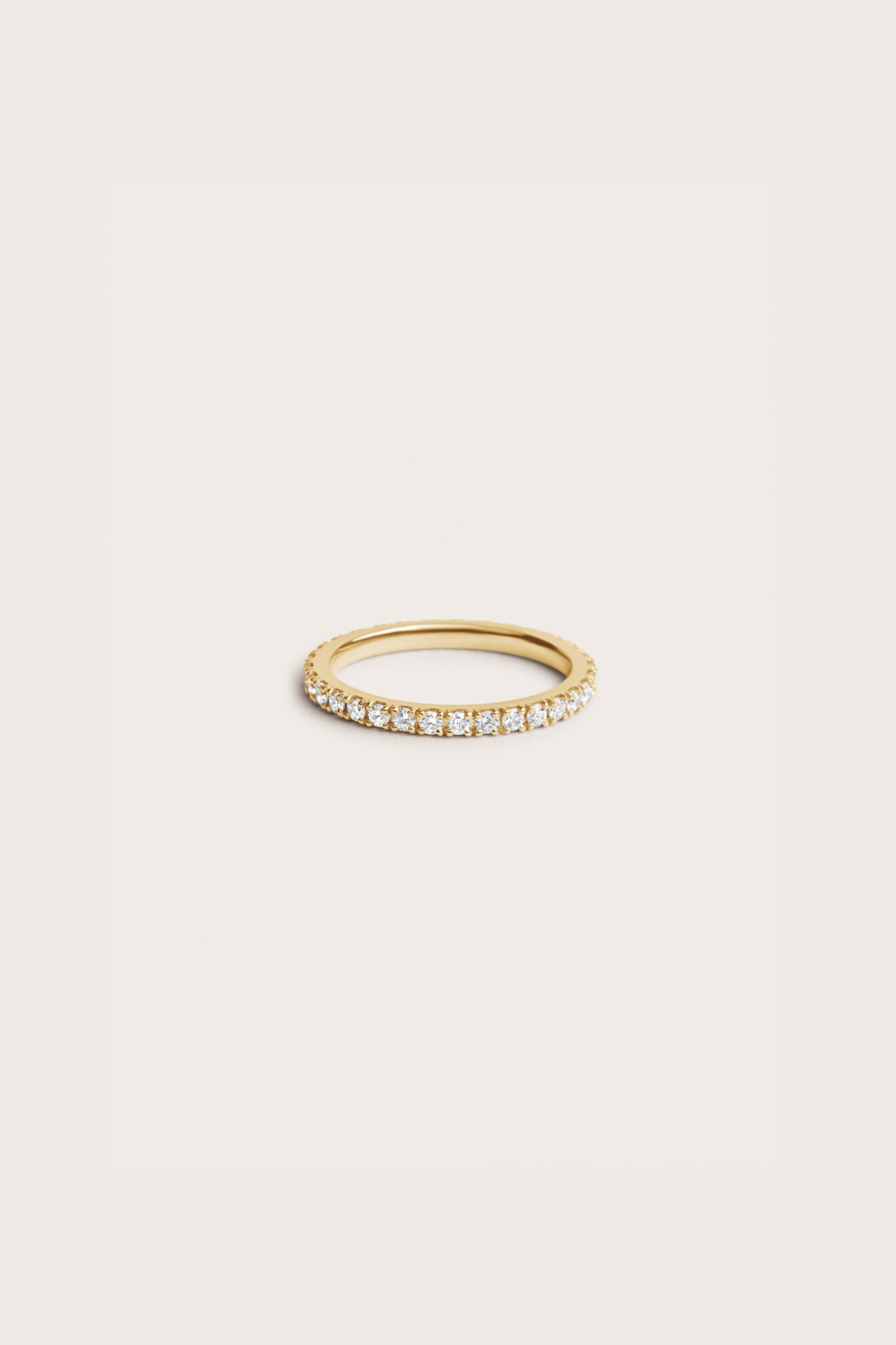 The Pavé Eternity Ring Petite shines delicately bright thanks to 0.015ct round brilliant, sustainably created diamonds set perfectly symmetrically. A modern heirloom, this ring will last beautifully thanks to the finest craftsmanship and highest quality gold and diamonds.