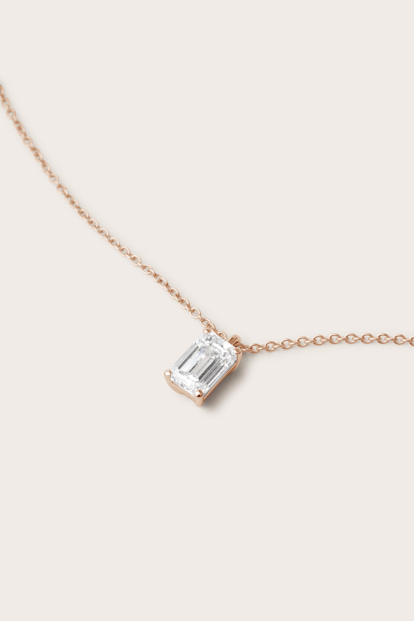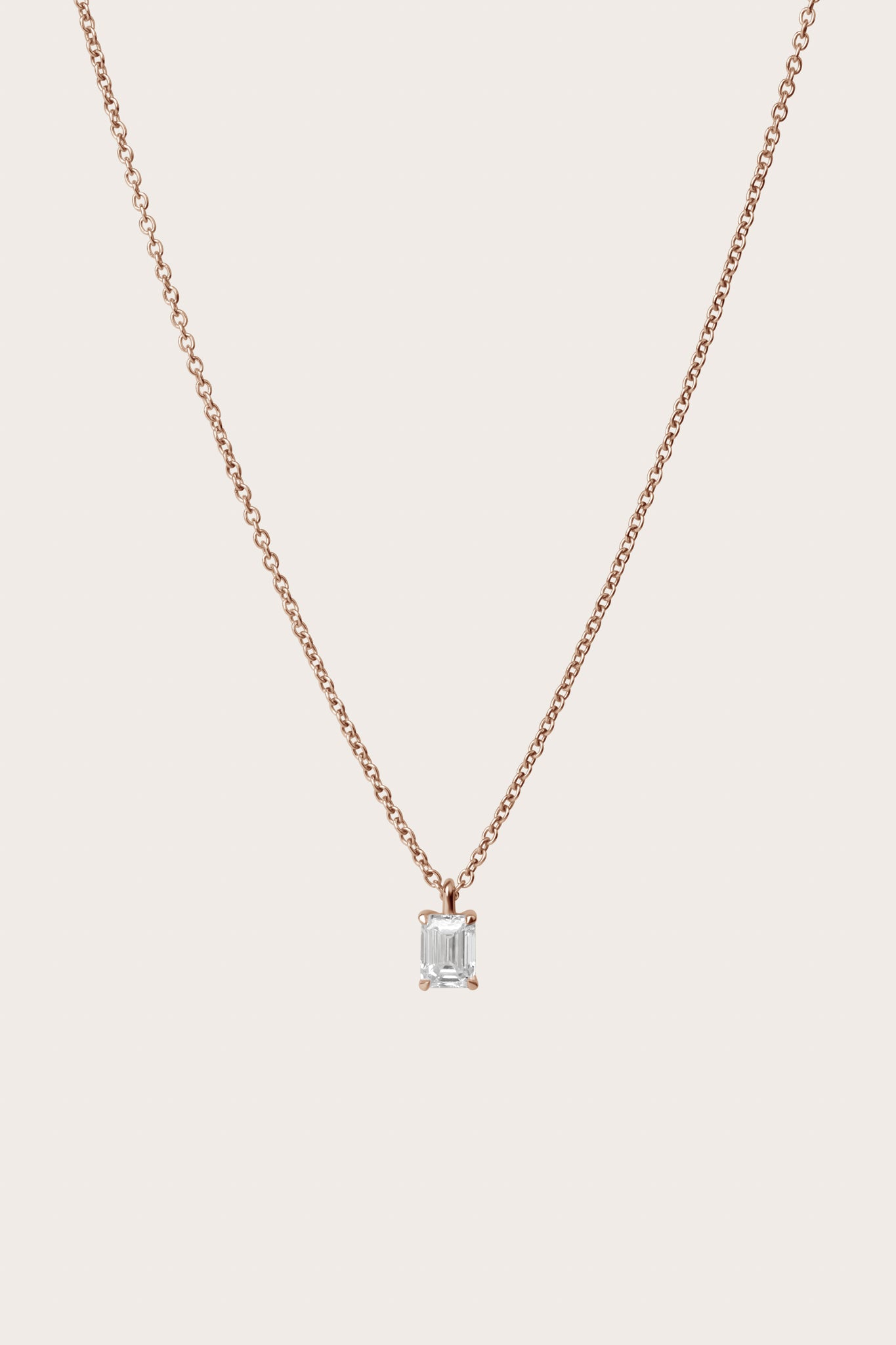 The Emerald Diamond Pendant Necklace is an ethical yet modern choice with a classic pendant setting and a sustainably created emerald-cut diamond. The chain has three jump rings for clasping the necklace at whichever length is best for you.