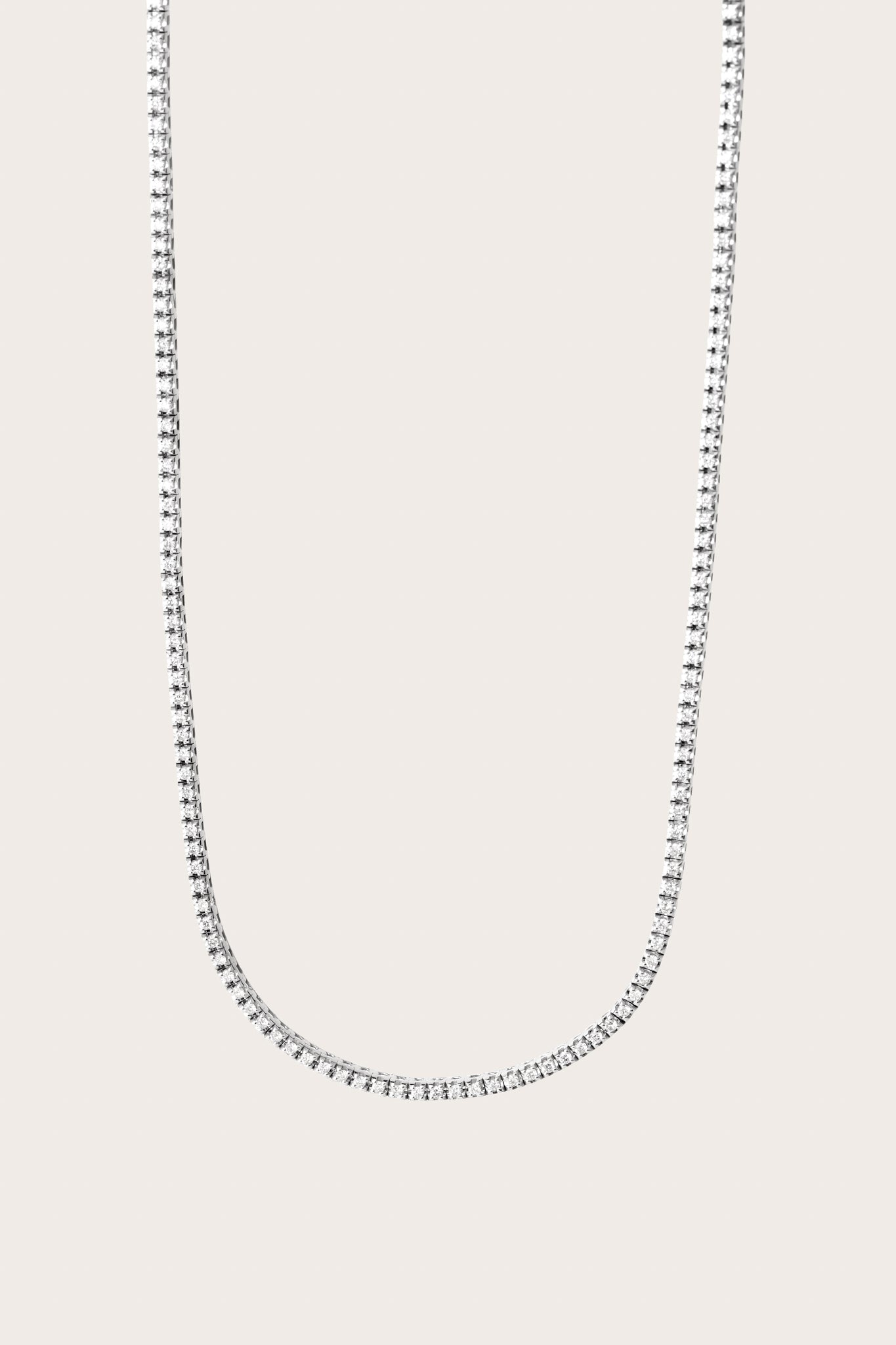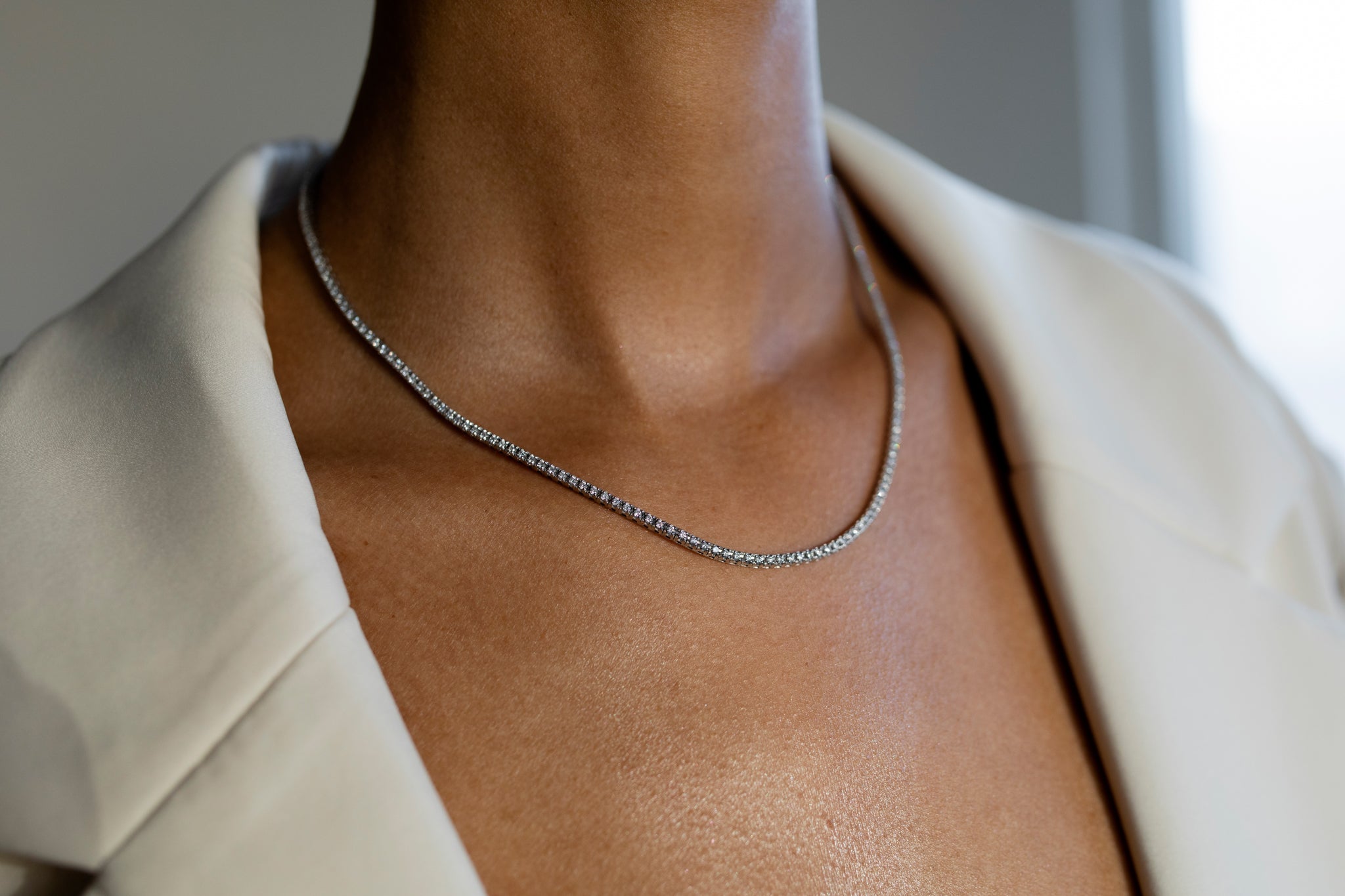 Timeless elegance meets modern luxury in the Tennis Necklace, featuring over 150 round brilliant diamonds set in 18K white gold.