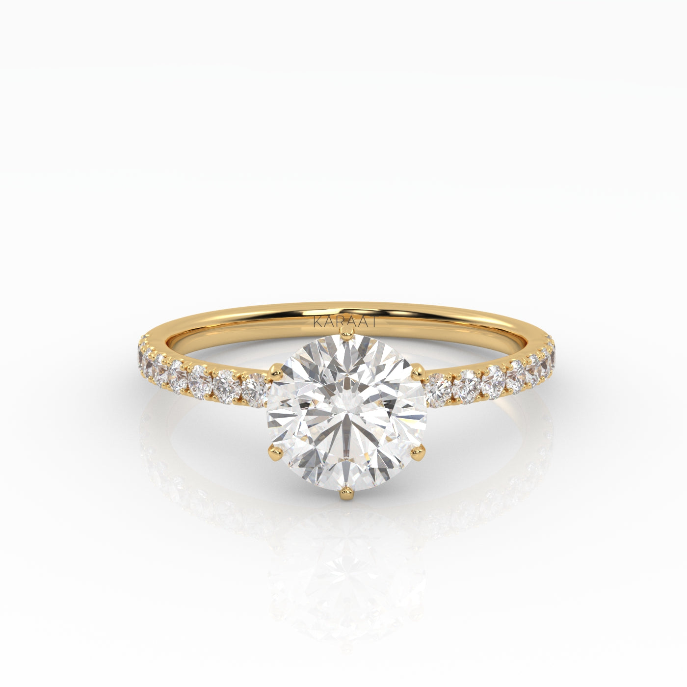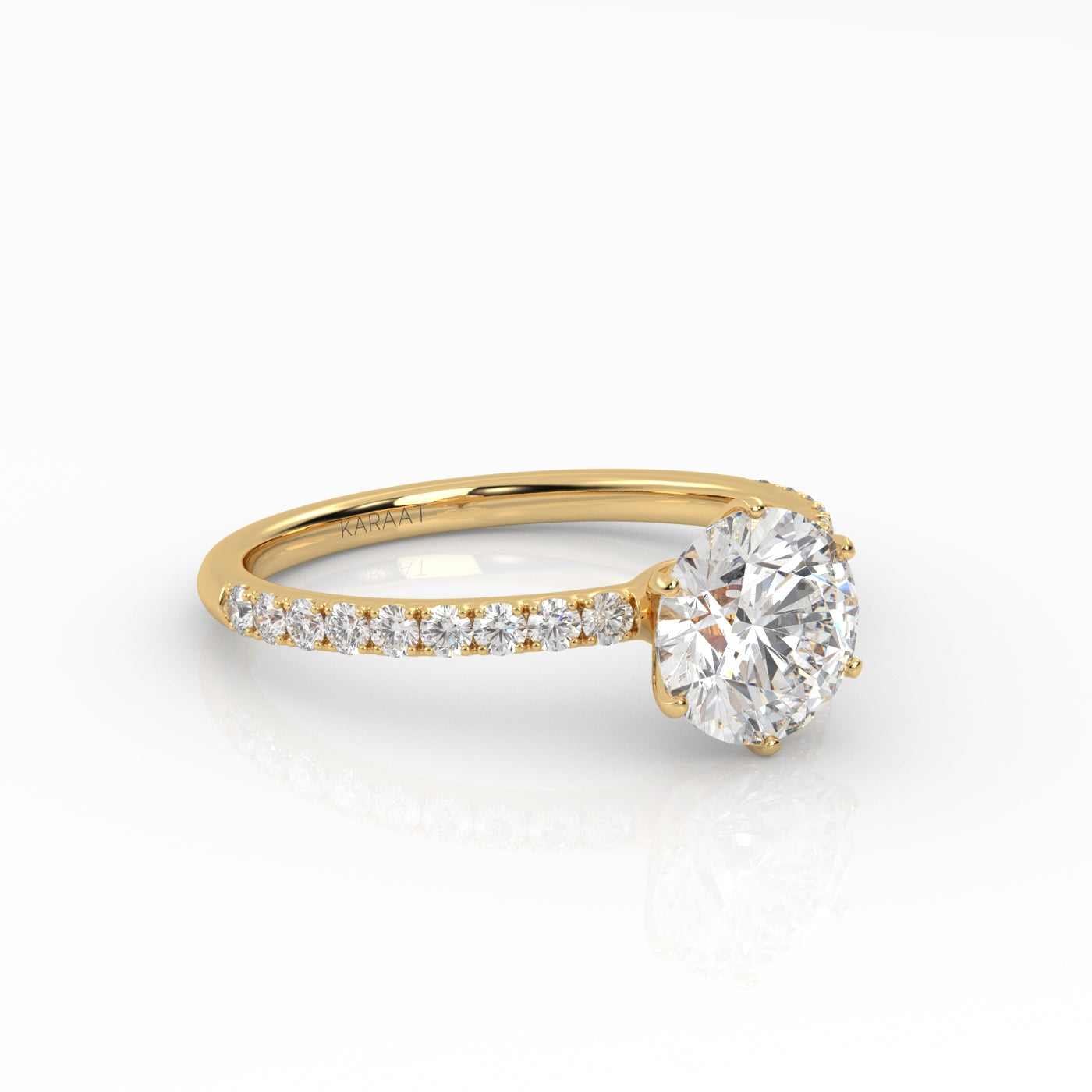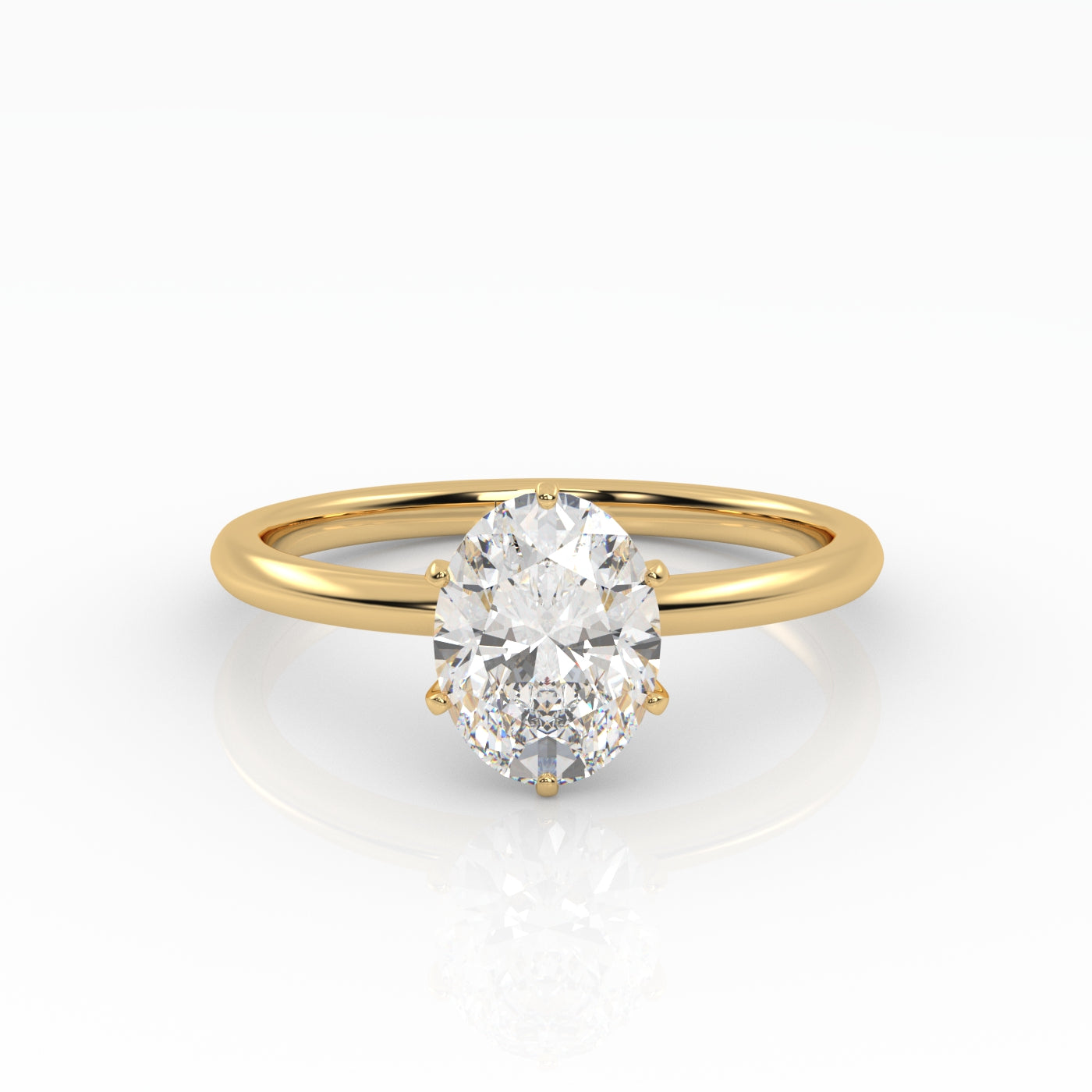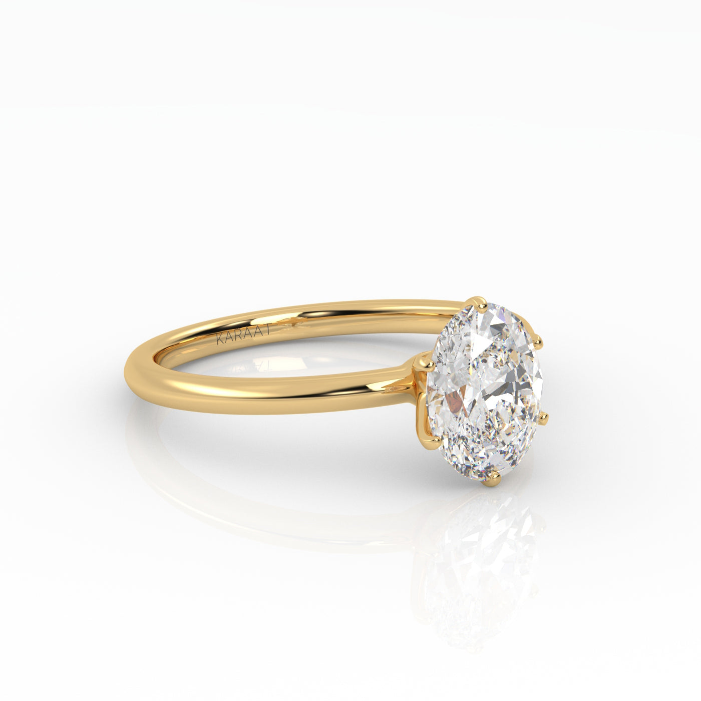 A solitaire ring with a crown setting, also know as six-prong design, is a timeless and elegant choice for an engagement or wedding ring. In a six-prong design, the prongs of the setting are evenly placed around the diamond, creating a firm and radiant ensemble. This setting beautifully accentuates oval and round diamonds, especially those of larger sizes. Adding a crown setting to a classic solitaire ring brings a delightful touch of luxury and refined brilliance. A six-prong diamond ring is an excellent choice for a woman seeking a classic and beautiful ring with an elegant sparkle. Our collection of diamond rings is crafted from ethical lab-grown diamonds and high-quality 18-karat recycled gold. Solitaire rings with crown settings are available in our selection with round and oval diamonds, and you can also customize your ring according to factors such as diamond size and gold color. You can also enhance your ring with side stones, which beautifully highlight the brilliance of the center diamond. If you don't find your dream ring in our collection, please feel free to contact us - we also create unique custom engagement and wedding rings according to our customers' preferences.