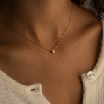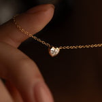 Celebrate romance with the Heart Bezel Diamond Necklace, featuring a stunning heart-cut diamond in a bezel setting, crafted from 18K recycled gold.