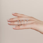 Shown with a 1-carat center stone. Model is wearing rings with 0.25, 0.5, 0.75 and 1ct center stones.