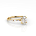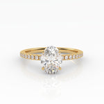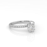 The Oval Solitaire diamond ring with Pavé band is a timeless engagement ring that adds sparkle with pavé-set diamonds. Designed to maximize light, the sustainably created oval-cut diamond is set high to ensure your center stone shines brightly.
