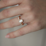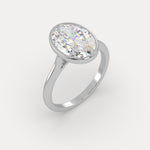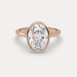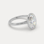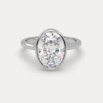 A graceful oval diamond engagement ring with a bezel and cloud setting, crafted to enhance light performance and create a radiant, sophisticated symbol of love.