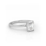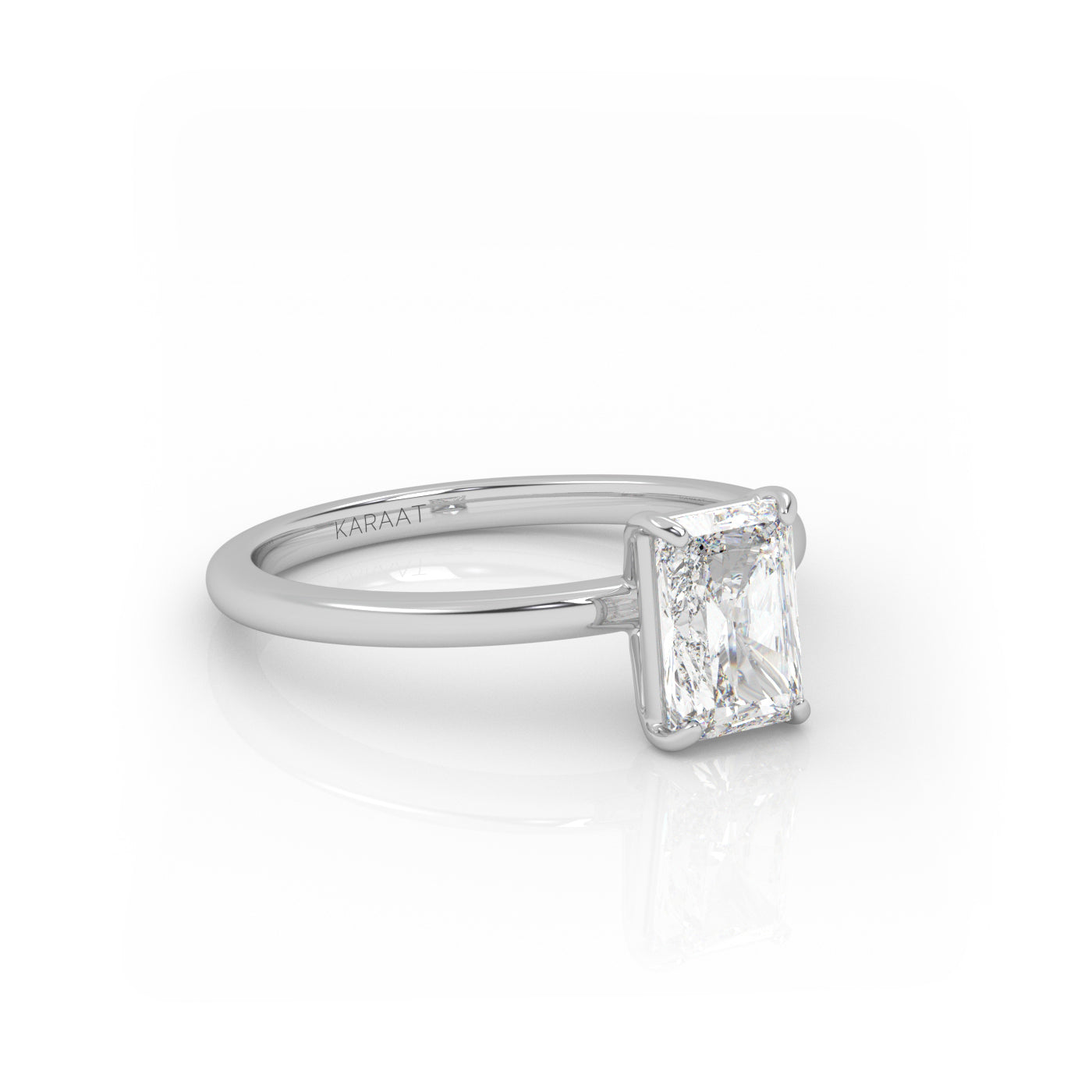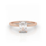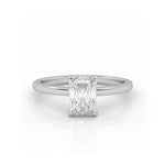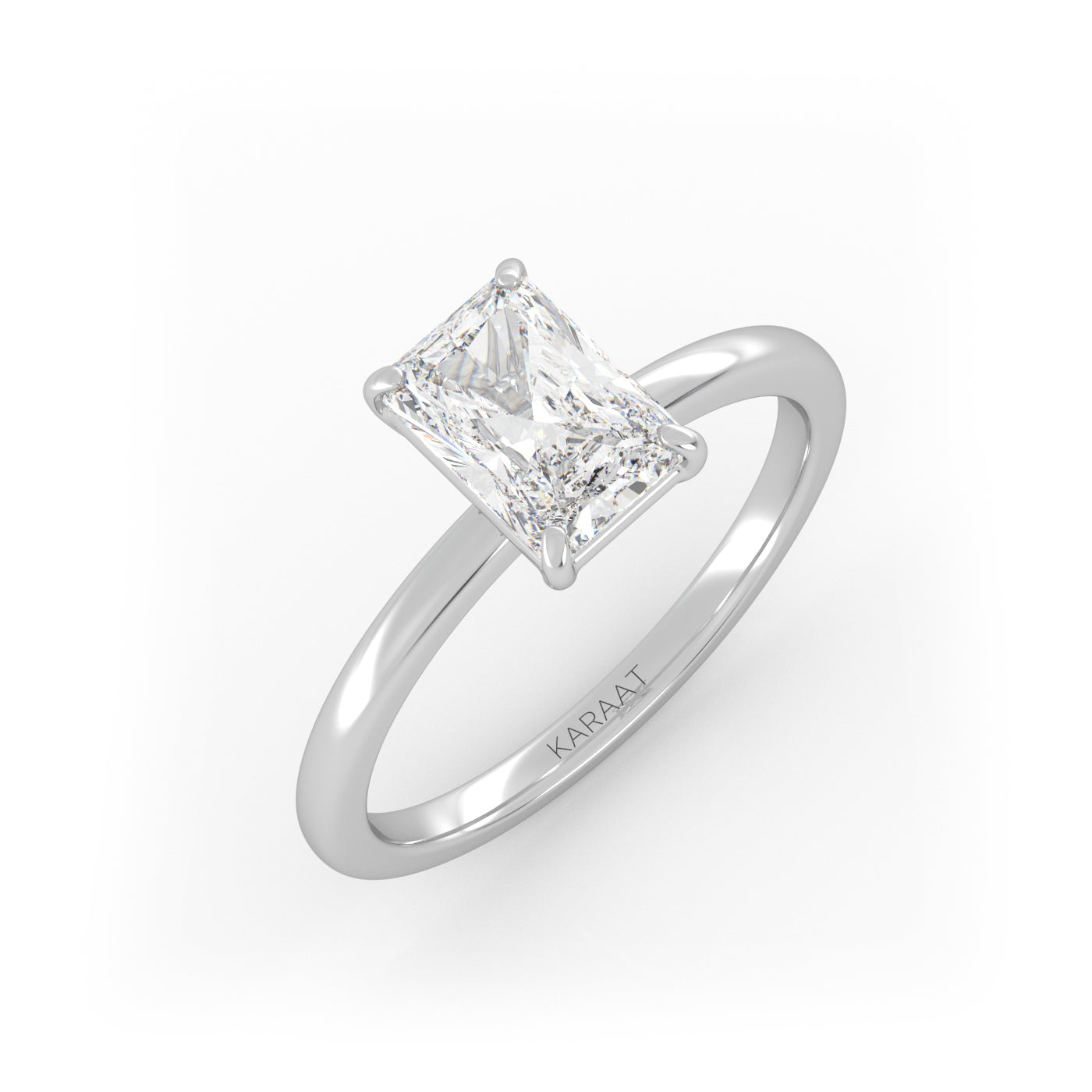 The Radiant Cut Solitaire diamond ring embodies timeless elegance. Designed to maximize light, the sustainably created radiant-cut diamond is set high for stunning brilliance.