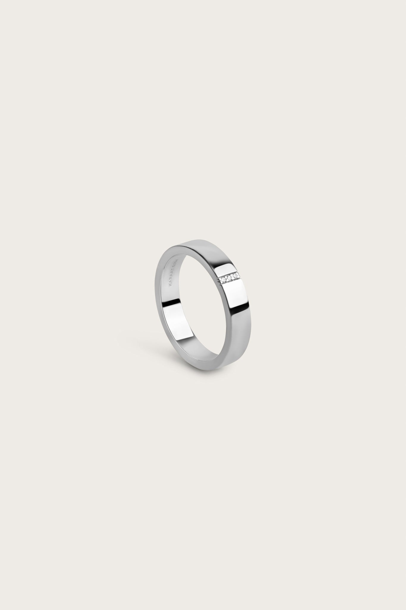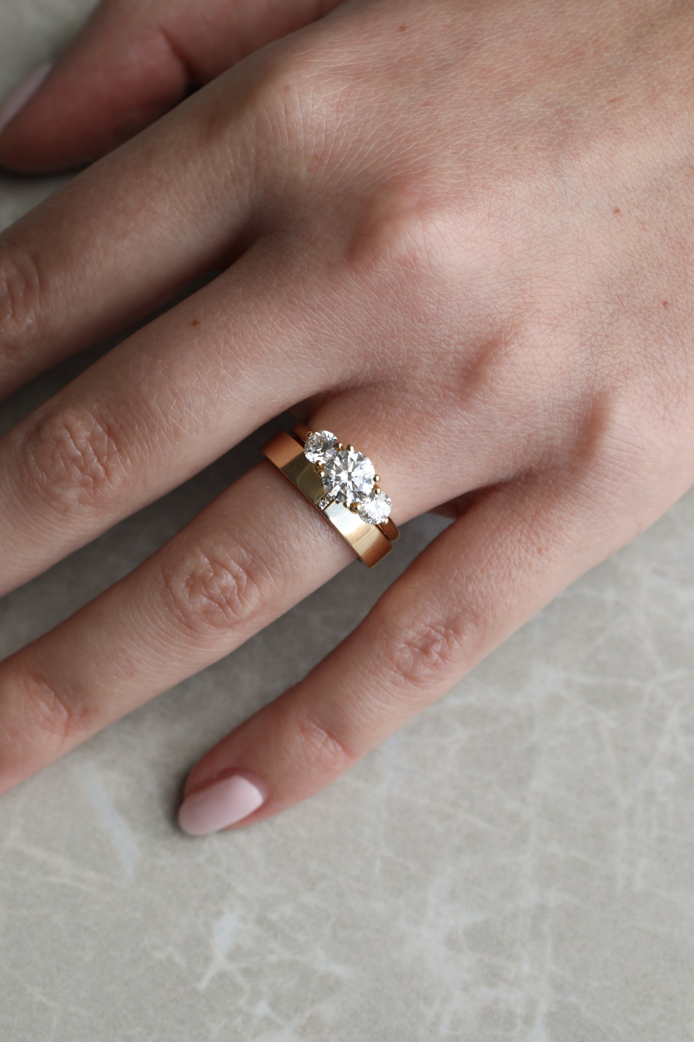 Designed to pair beautifully with our simple solitaire rings, this band adds depth and edge without overwhelming. The contrast between the clean, minimal solitaire and the structured shine of the cigar band creates a look that’s both timeless and unmistakably modern - ideal for the design-forward bride seeking bold minimalism.