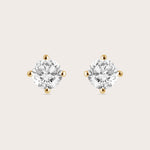 These diamond studs have brilliant-cut 1-carat diamonds on each side, with a 4-prong setting. Created with 18K solid gold, they have a traditional stud fastening for easy and secure use. These earrings catch the light from different angles making sure the diamonds sparkle as you go.