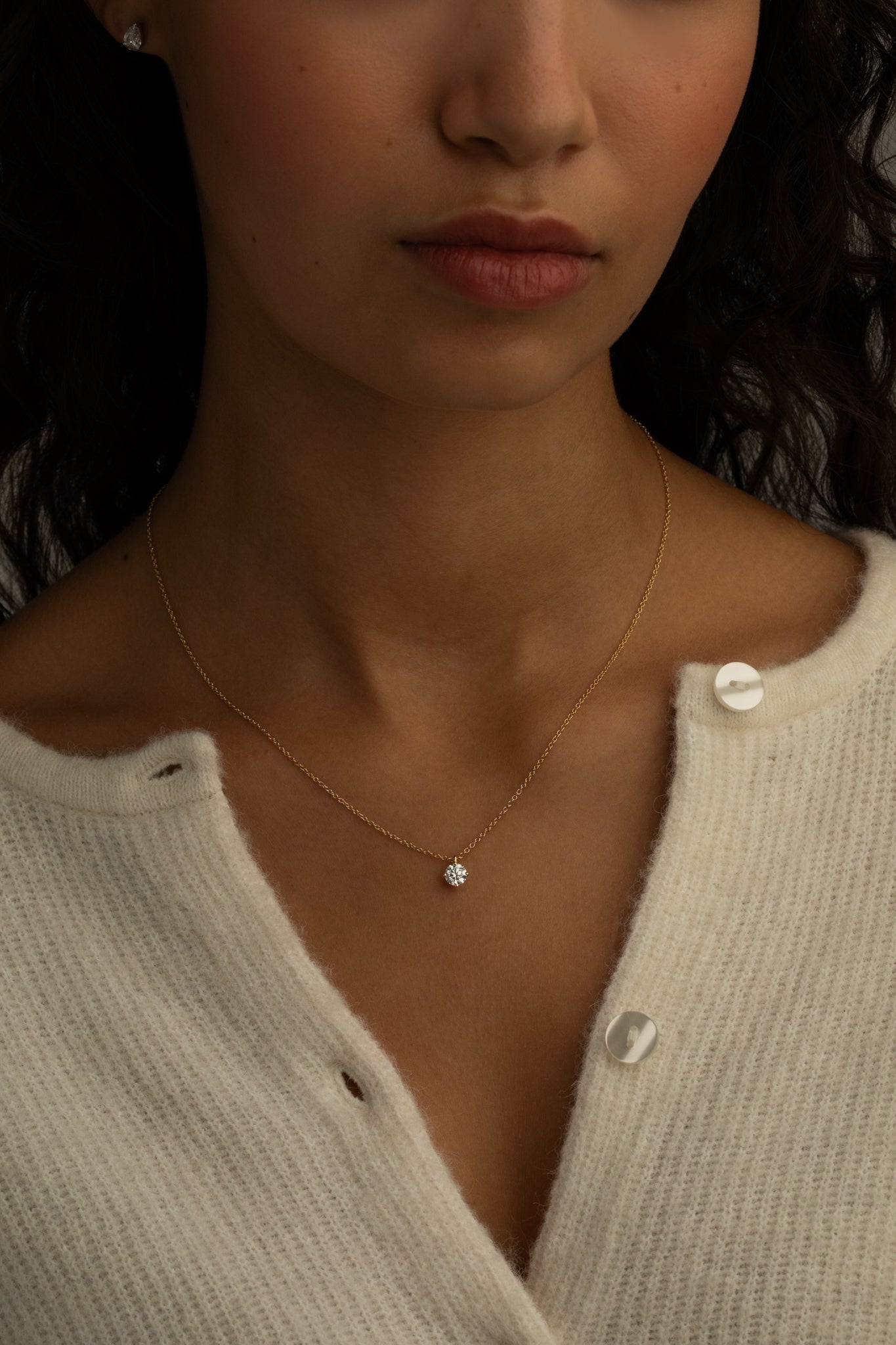 The Round Diamond Pendant Necklace is an ethical yet modern choice with a classic pendant setting and a sustainably created diamond. The chain has three jump rings for clasping the necklace at whichever length is best for you.