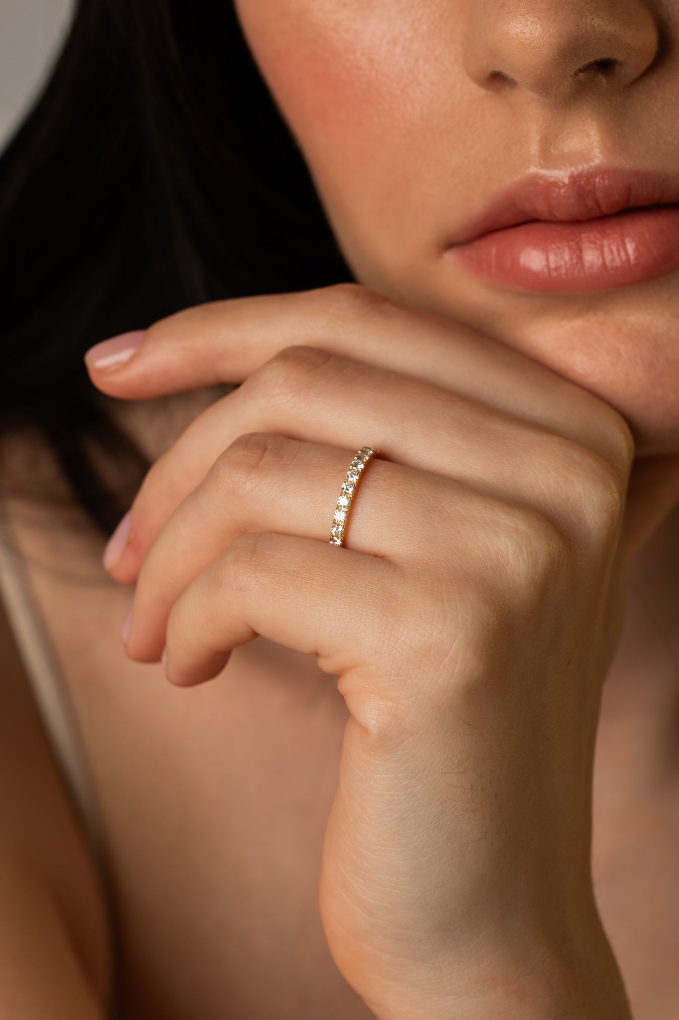 Introducing the elevated version of our most-loved Pavé Diamond Ring, featuring larger diamonds for added brilliance. The Pavé Diamond Ring III matches beautifully with our Wedding & Engagement collection and creates a ring stack with a modern feel. Crafted from 18K solid gold, it offers exceptional quality and durability, ensuring everyday luxury that lasts.