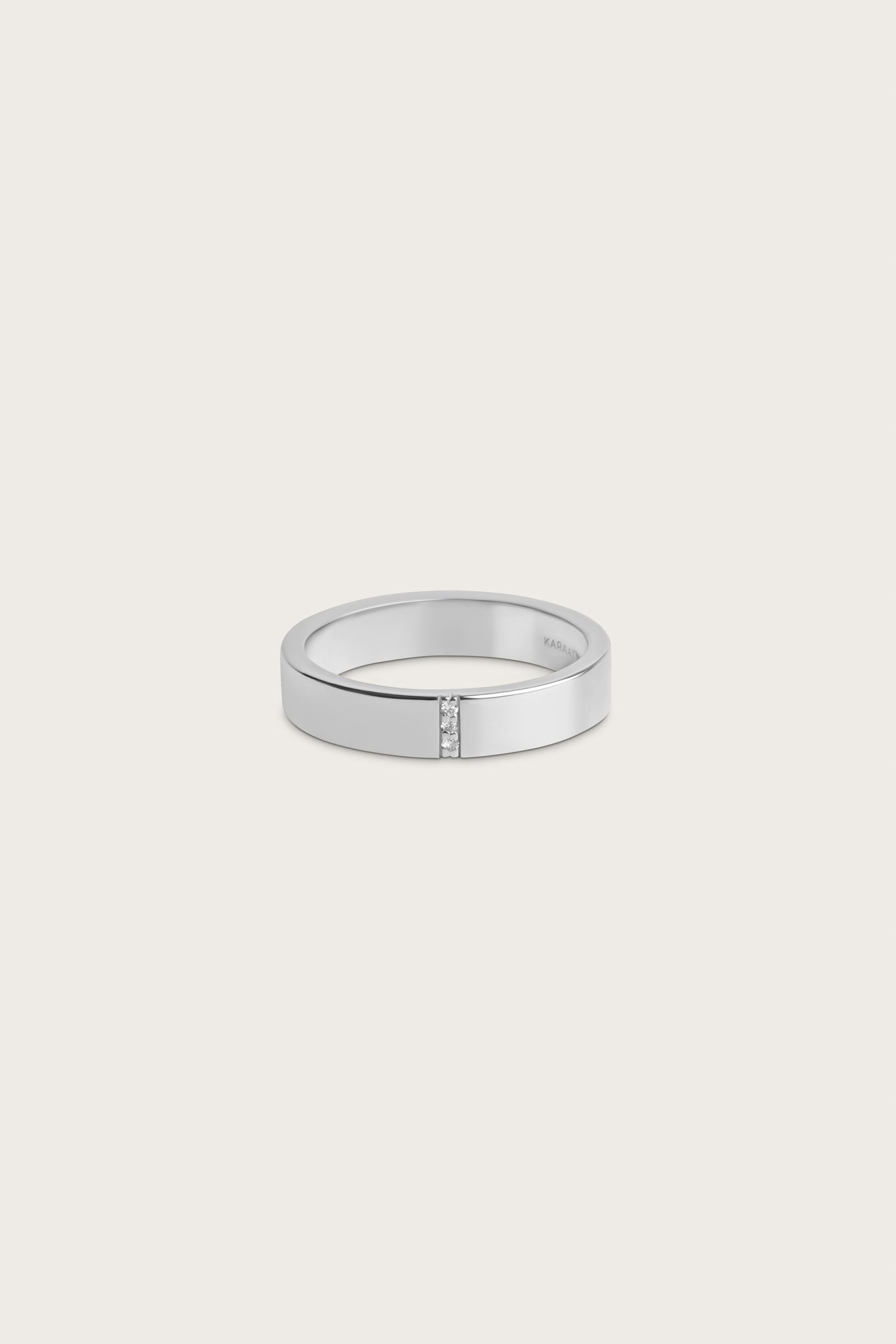 Designed to pair beautifully with our simple solitaire rings, this band adds depth and edge without overwhelming. The contrast between the clean, minimal solitaire and the structured shine of the cigar band creates a look that’s both timeless and unmistakably modern - ideal for the design-forward bride seeking bold minimalism.
