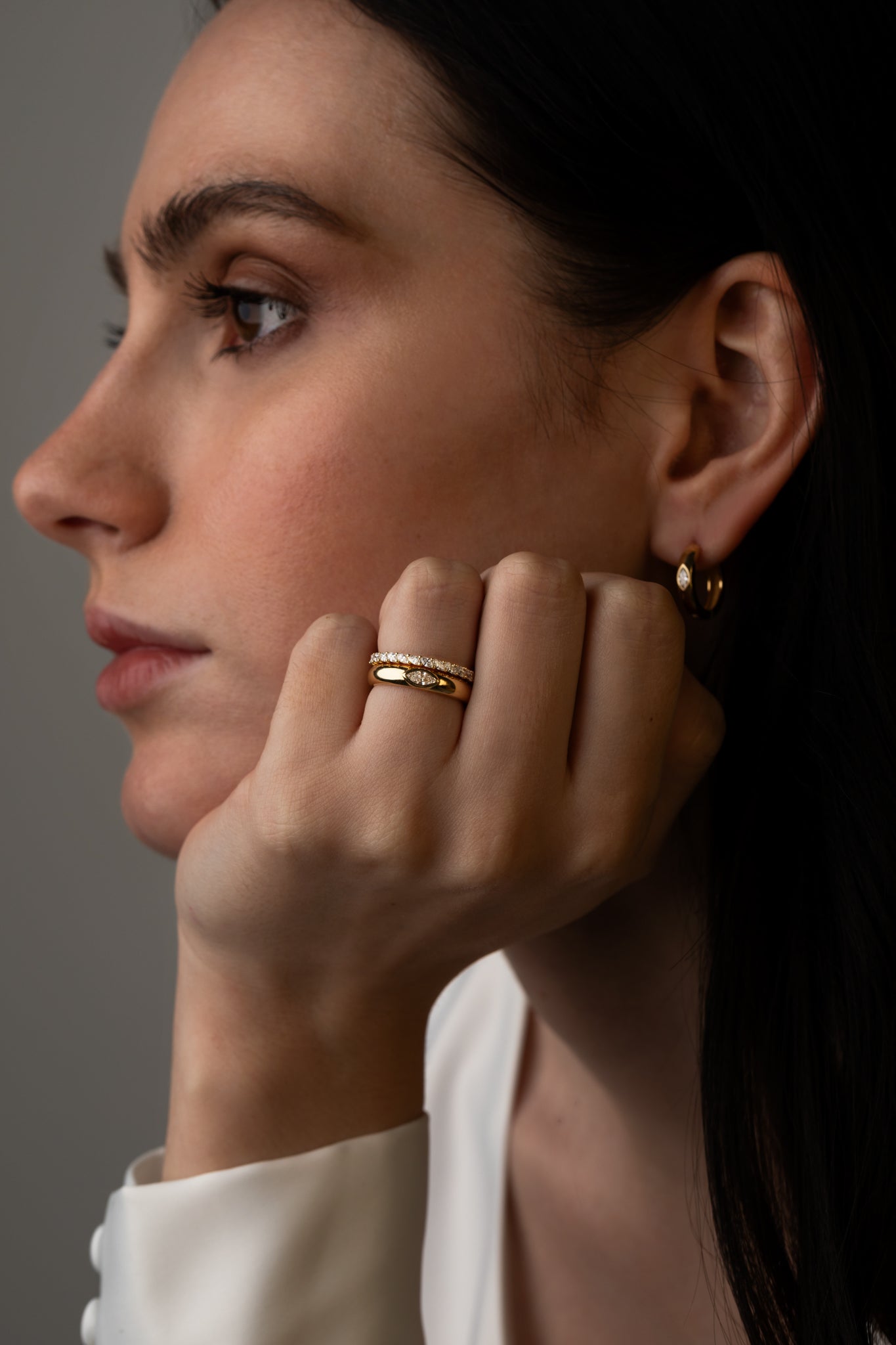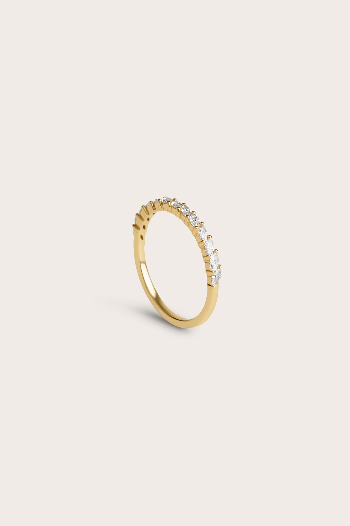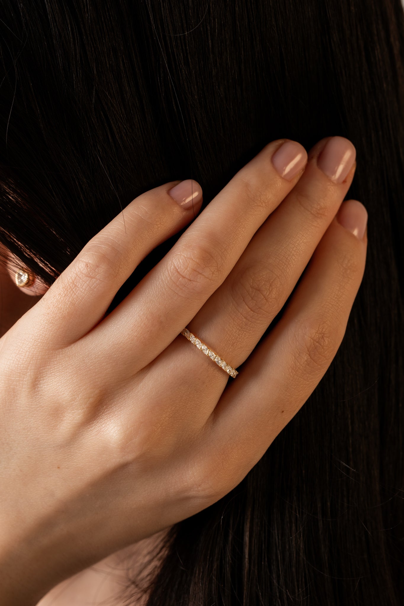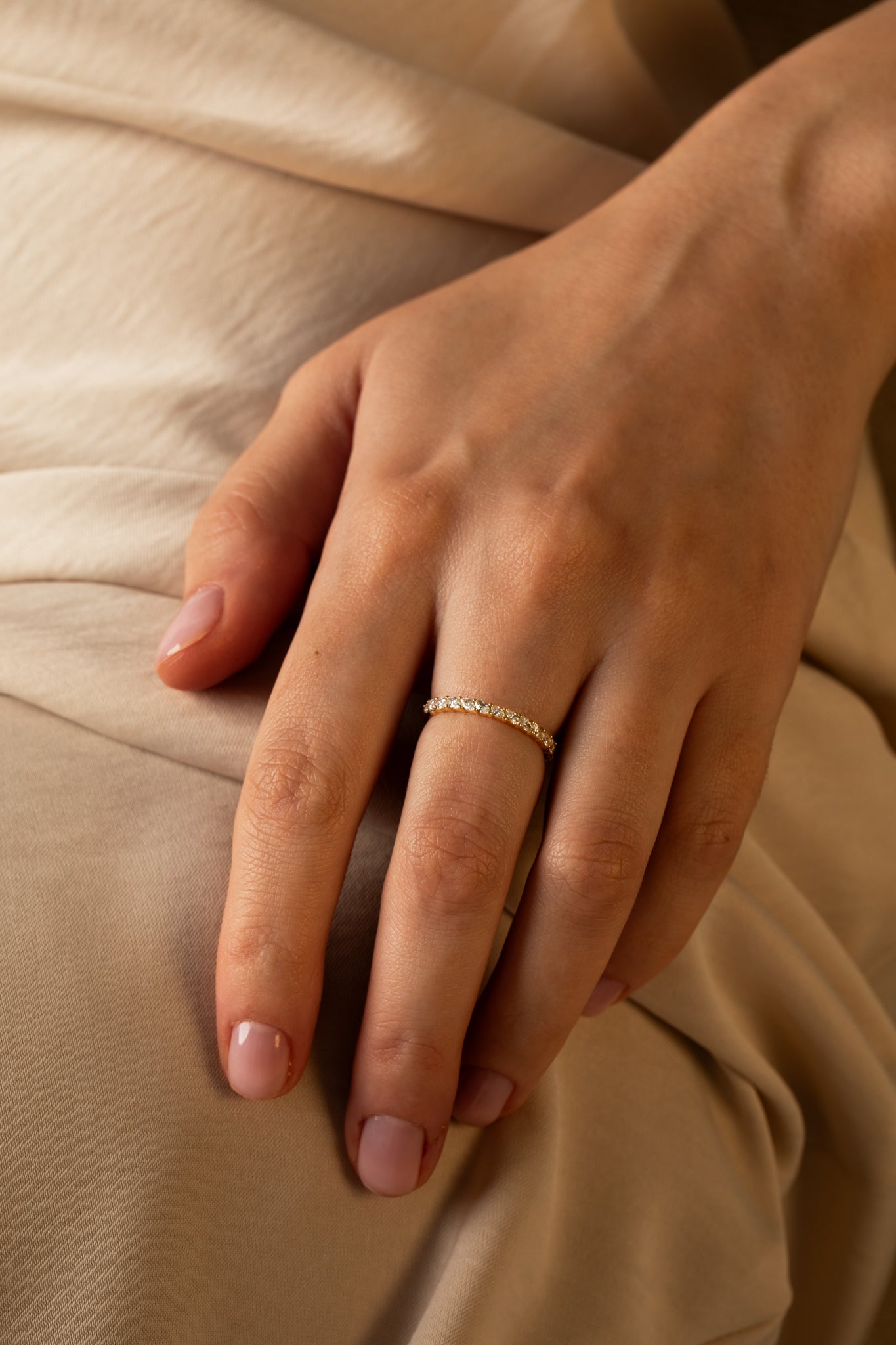 Elevate your ring stack with our Marquise Half Eternity Ring, a distinctive half eternity ring that captures the essence of romance and sophistication. This beautifully delicate ring showcases meticulously arranged marquise-cut, sustainably created diamonds adding a uniquely feminine touch. Perfect to be worn as a wedding band, stacked with engagement rings, or as a luxurious piece on its own – whether commemorating a special occasion or serving as an everyday reminder of elegance, the Marquise Half Eternity Ring beautifully balances timeless romance and modern sophistication.