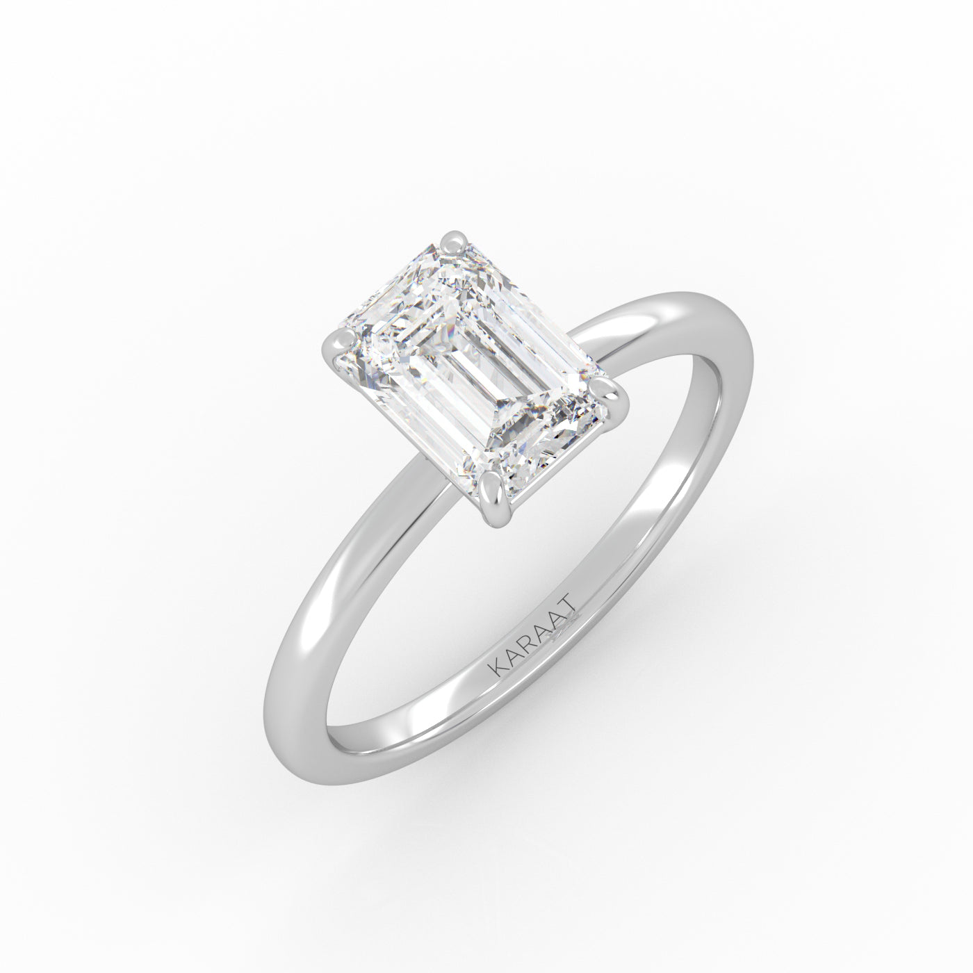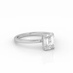 Elegant Emerald Solitaire engagement ring, crafted from ethical 1-carat lab-grown diamond and 18k white gold.