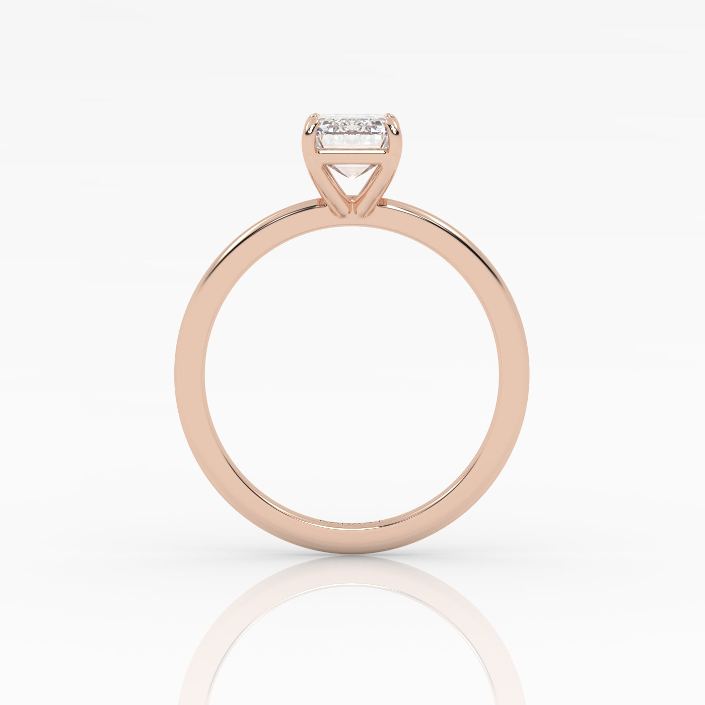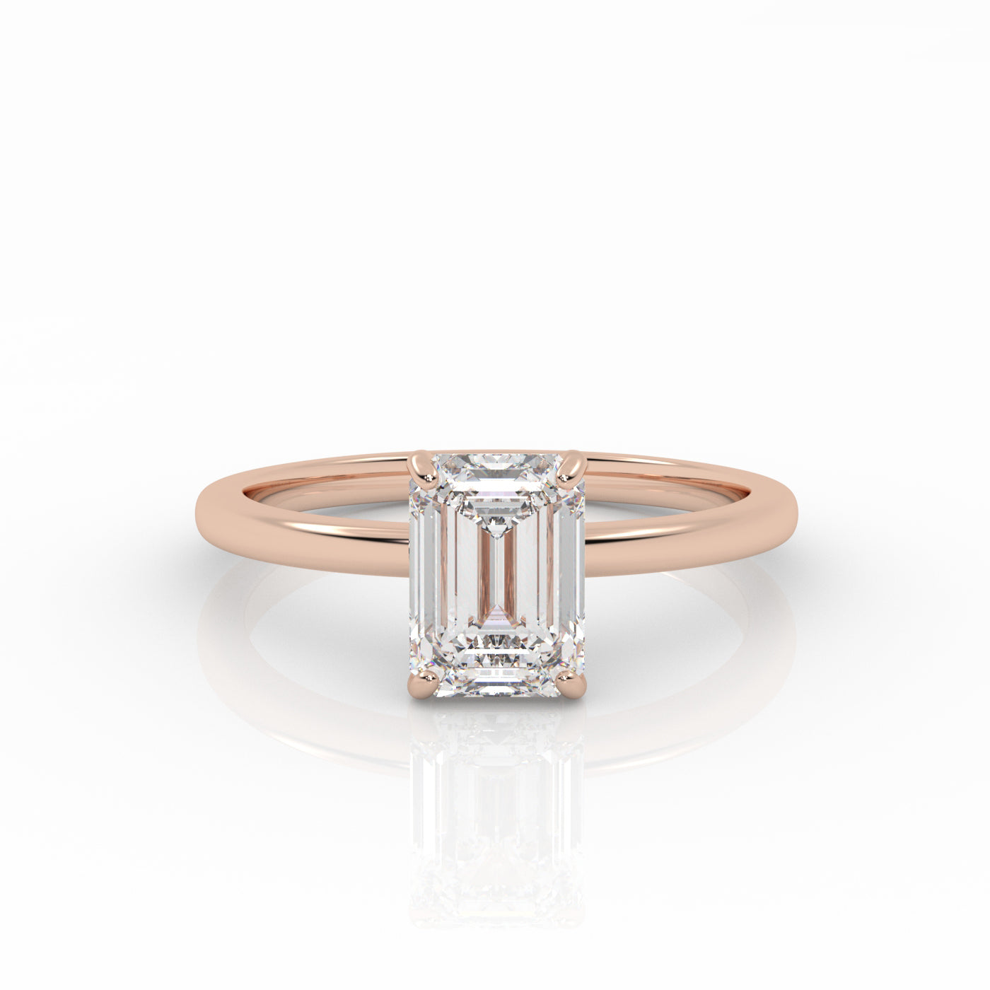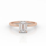 Emerald Solitaire lab-grown diamond ring in a rose gold 4-prong setting.