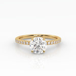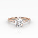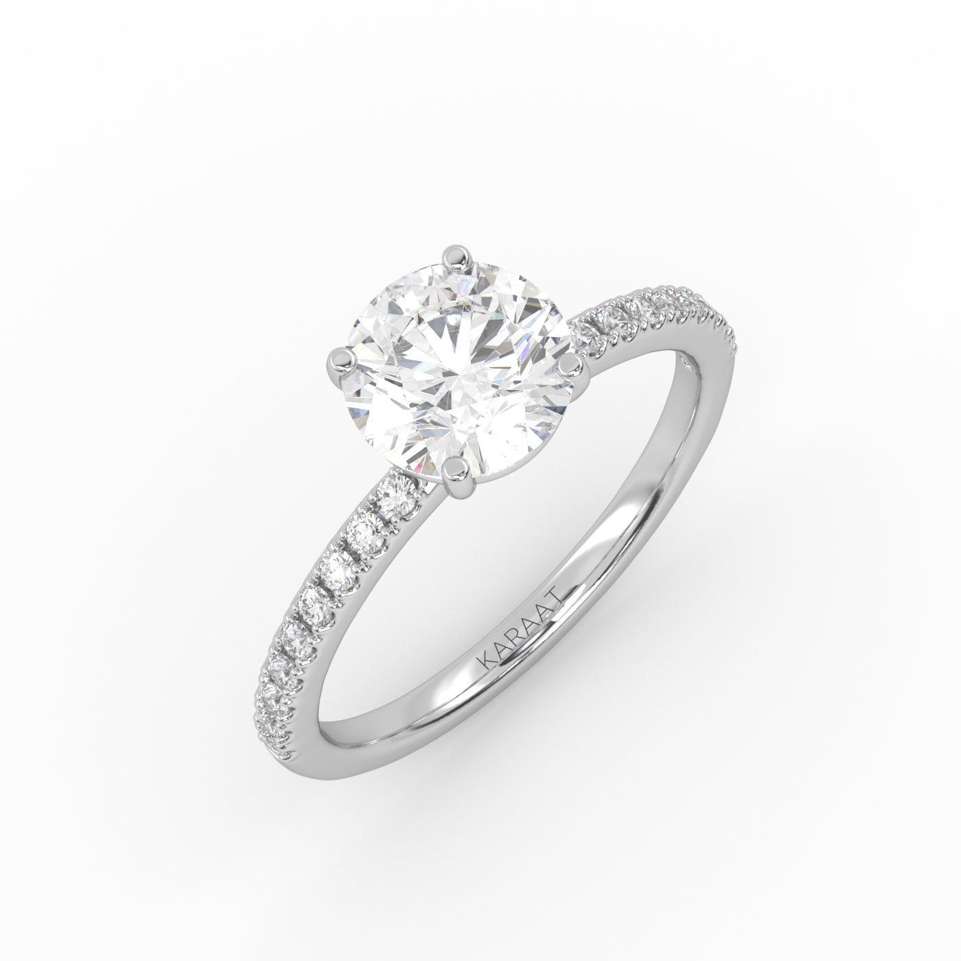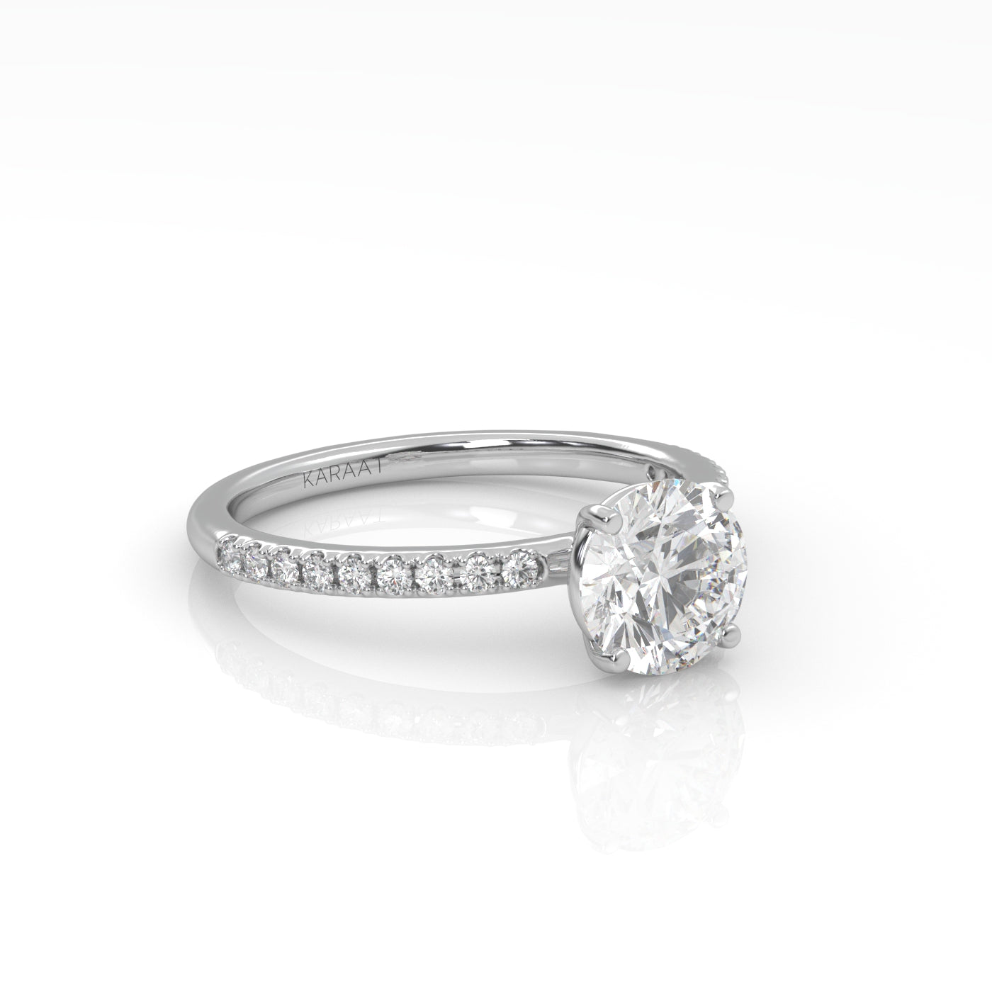The Round Solitaire diamond ring with Pavé band is a classic engagement ring that adds sparkle with pavé-set diamonds. Designed to maximize light, the sustainably created round-cut diamond is set high to ensure your center stone shines brightly.