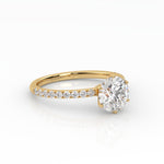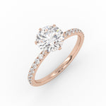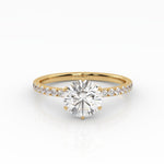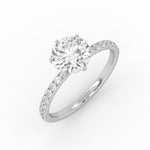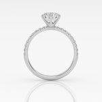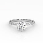 Pyöreä Solitaire-sormus kruunuistutuksella ja sivukivillä