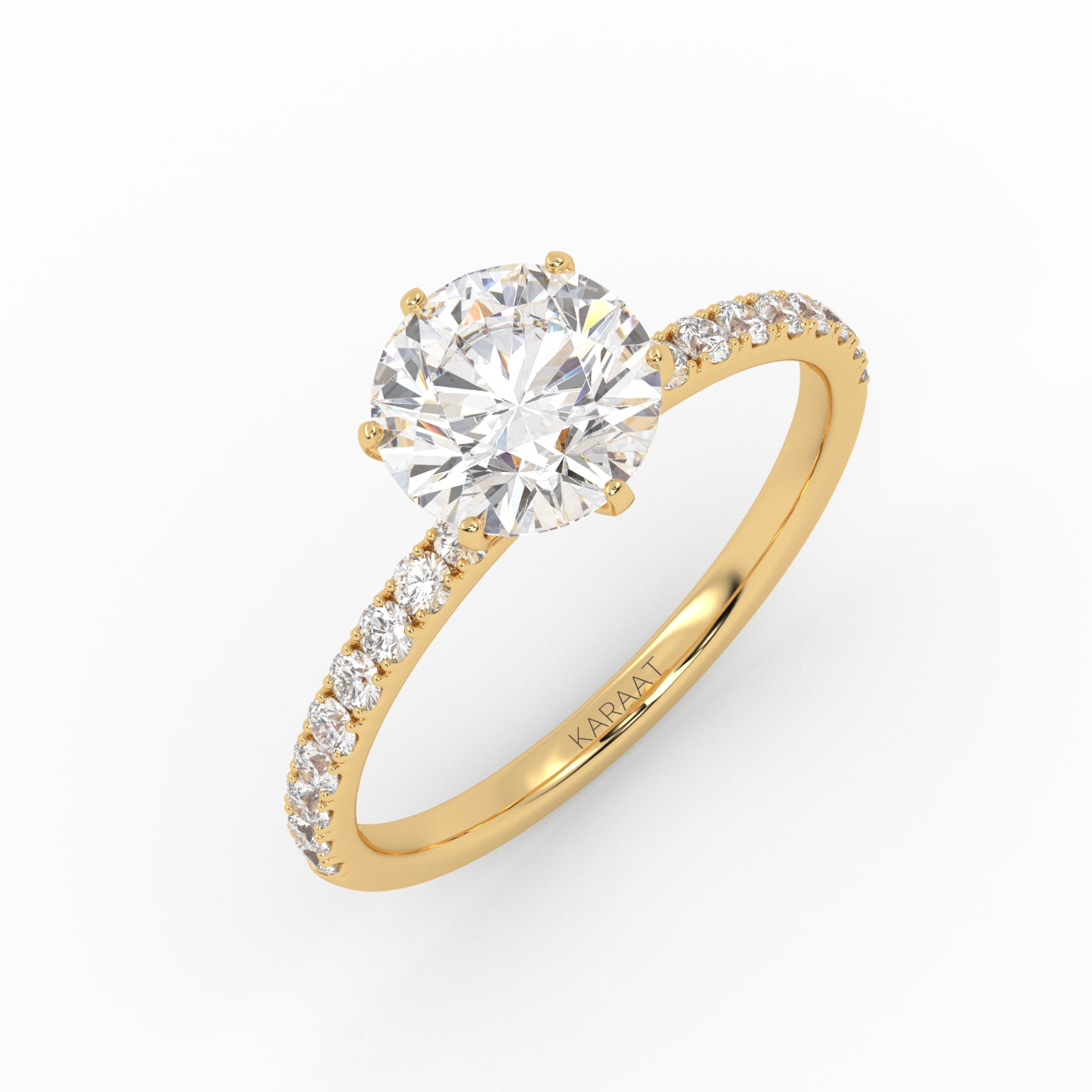 Pyöreä Solitaire-sormus kruunuistutuksella ja sivukivillä symboloi ajatonta rakkautta. 18 karaatin kierrätyskullasta valmistettu sormus päästää säihkyvän pyöreän laboratoriotimantin oikeuksiinsa ylellisessä ja etenkin suuremmille timanteille sopivassa kruunuistutuksessa.