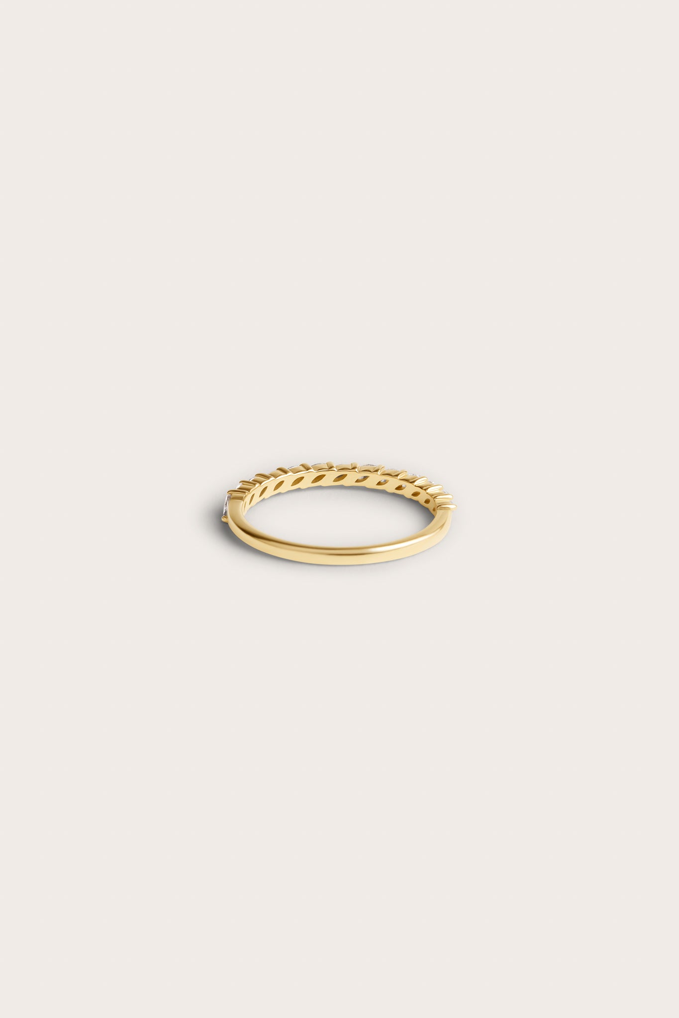 Hienostunut ja romanttinen Markiisi rivisormus on erinomainen valinta vihkisormukseksi tai lisä loppuelämän korukokoelmaan. Tämä kauniin siro sormus sisältää 13 huolellisesti aseteltua markiisi-hiontaista kestävästi luotua laboratoriotimanttia, luoden herkän ja naisellisen ilmeen ripauksella ylellistä säihkettä. Romanttinen Markiisi rivisormus on erinomainen valinta vihkisormukseksi, vuosipäivälahjaksi kuin jokapäivän arkikoruksi. Olipa kyseessä elämän erityisen tilaisuuden juhlistaminen tai säihkeen lisääminen jokaiseen päivään, Markiisi rivisormus täydentää korukokoelmaasi modernilla hienostuneisuudella ja ajattomalla kauneudella.