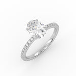Ovaali Solitaire-timanttisormus sivukivillä antaa sormukselle romanttisen ilmeen sekä upean säihkeen. Ovaali timantti antaa sormukselle sivukivien säestämänä upean säihkeen, joka pääsee oikeuksiinsa solitaire-istutuksessa.