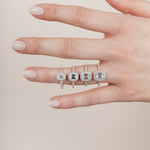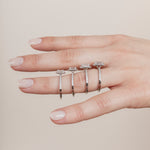 Kuvissa sormus 1 karaatin keskikivellä. Mallilla on päällään 0.25, 0.5, 0.75 ja 1ct keskikivelliset sormukset.