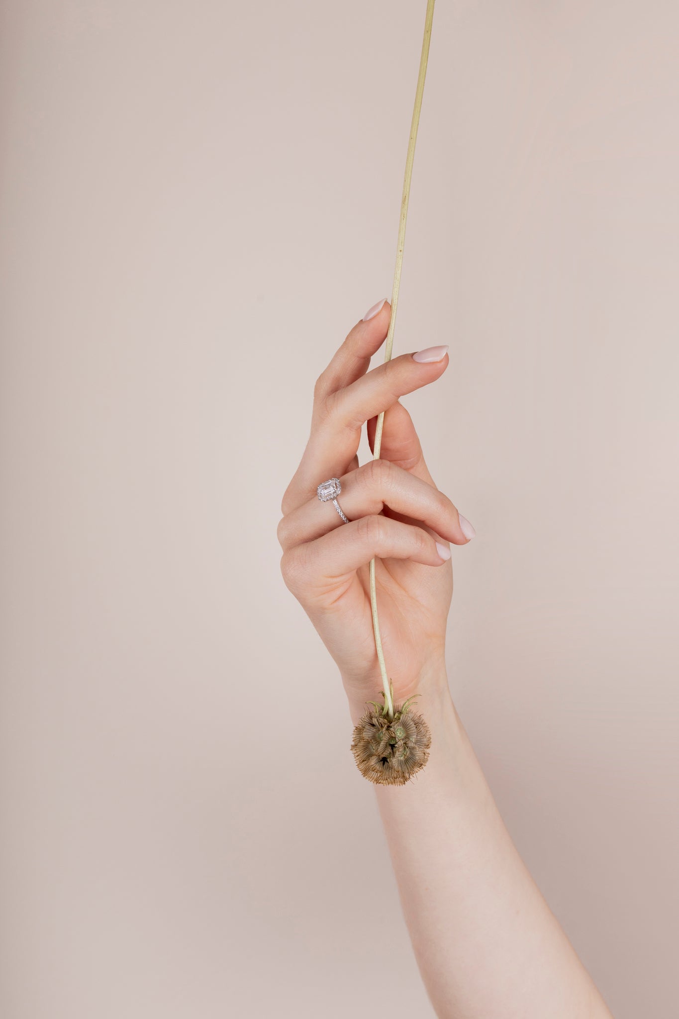 Emerald Solitaire-sormus halolla ja sivukivillä yhdistelee klassisia elementtejä huokuen romantiikkaa ja modernia luksusta. Smaragdihionnan 'hall of mirrors' -efekti antaa eettisesti luodulle timantille puhtaan ja avoimen ilmeen sekä hienovaraisen säihkeen joka korostaa korkealaatuista timanttia. Timantit on istutettu 18 karaatin kierrätyskullasta valmistettuun sormukseen tarpeeksi korkealle että sen viereen mahtuu Pavé-rivisormuksemme.