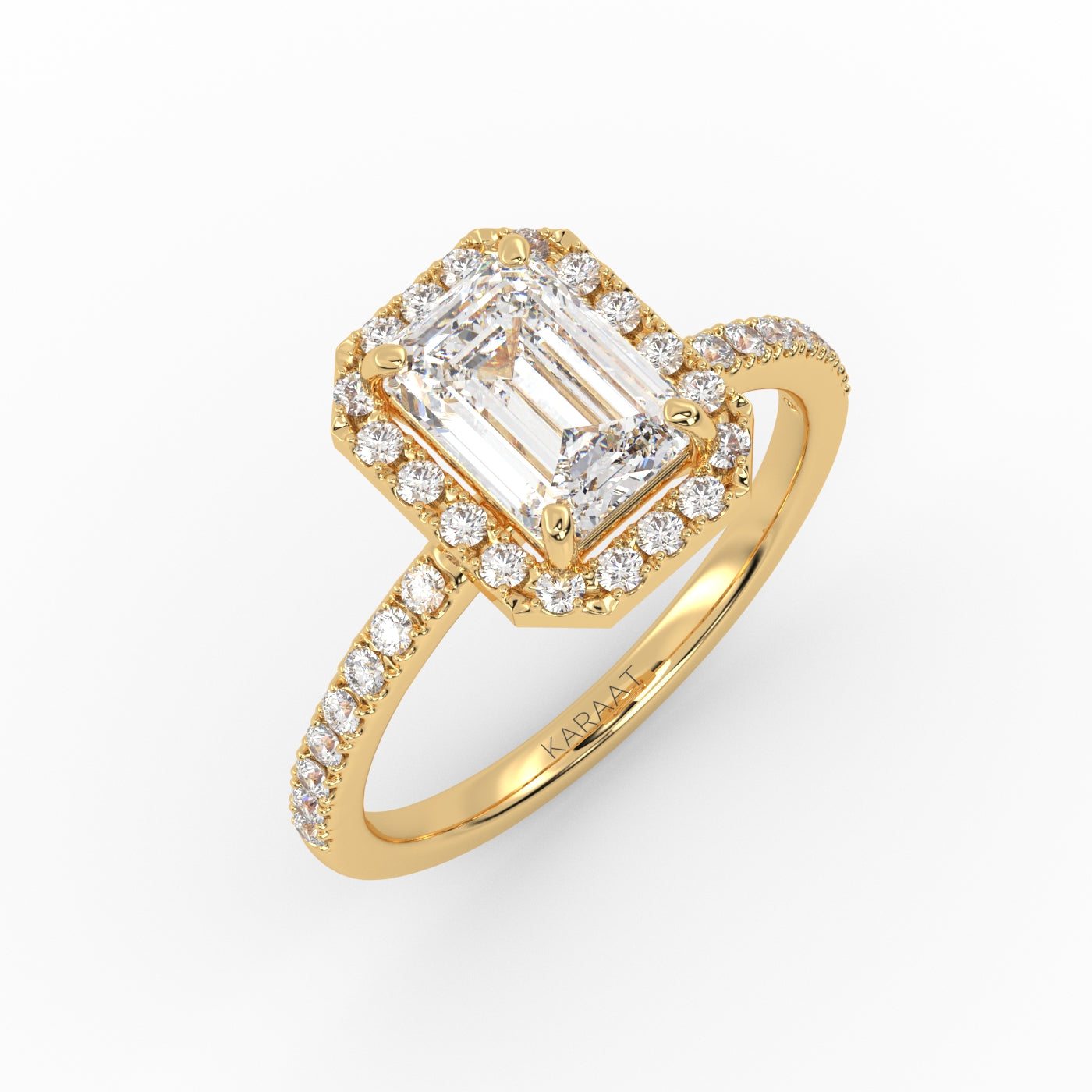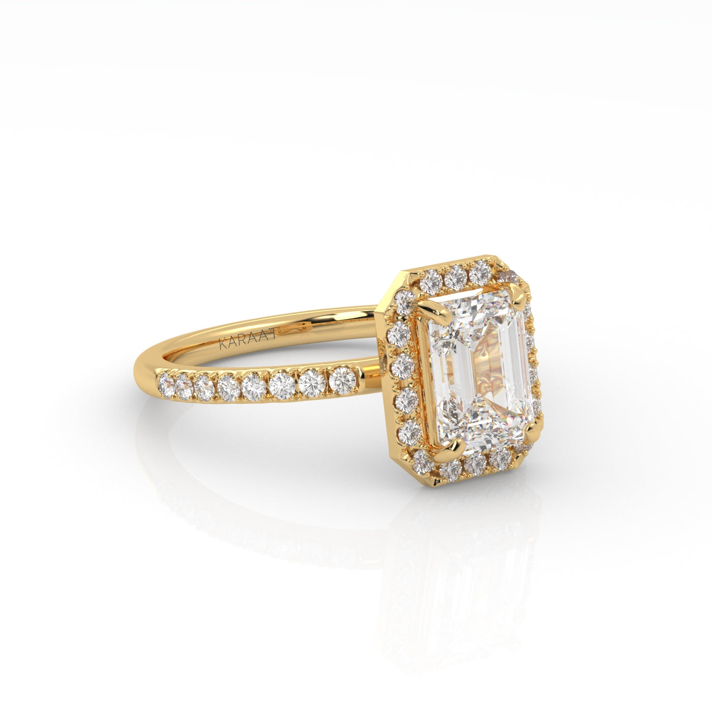 Emerald Solitaire-sormus halolla ja sivukivillä
