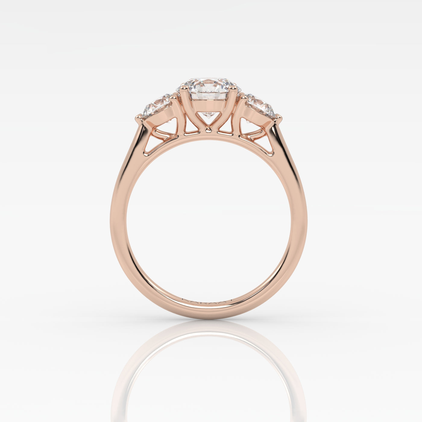 Pyöreä Trilogy -timanttisormus on saatavana usealla eri kokoisella keskikiven ja sivukiven yhdistelmällä jotka on suunniteltu harmoniseksi kokonaisuudeksi keskikiven kokoon suhteutettuna. Sivukivet vastaavat valitsemaasi keskikiven väriä ja kirkkautta.