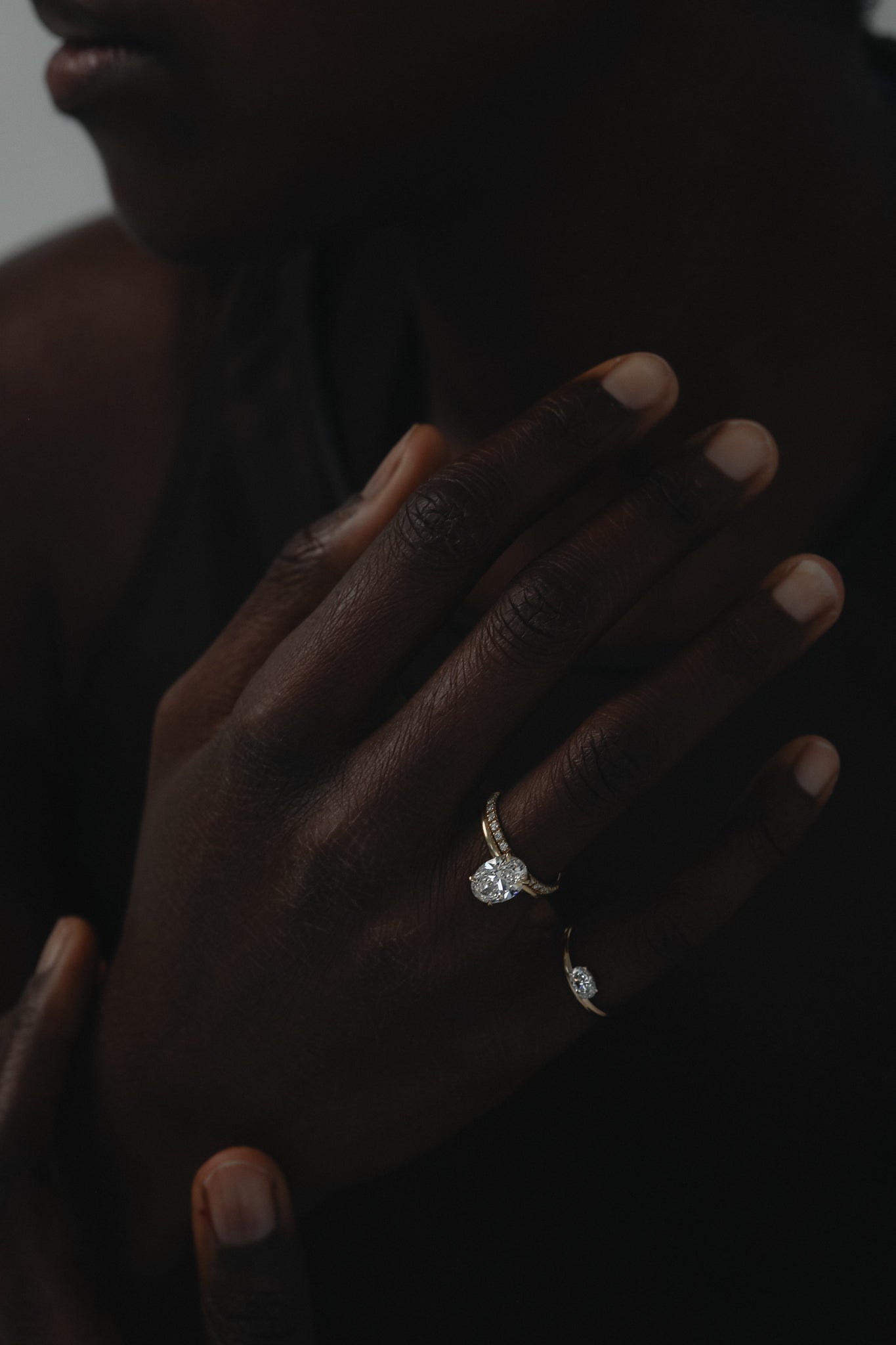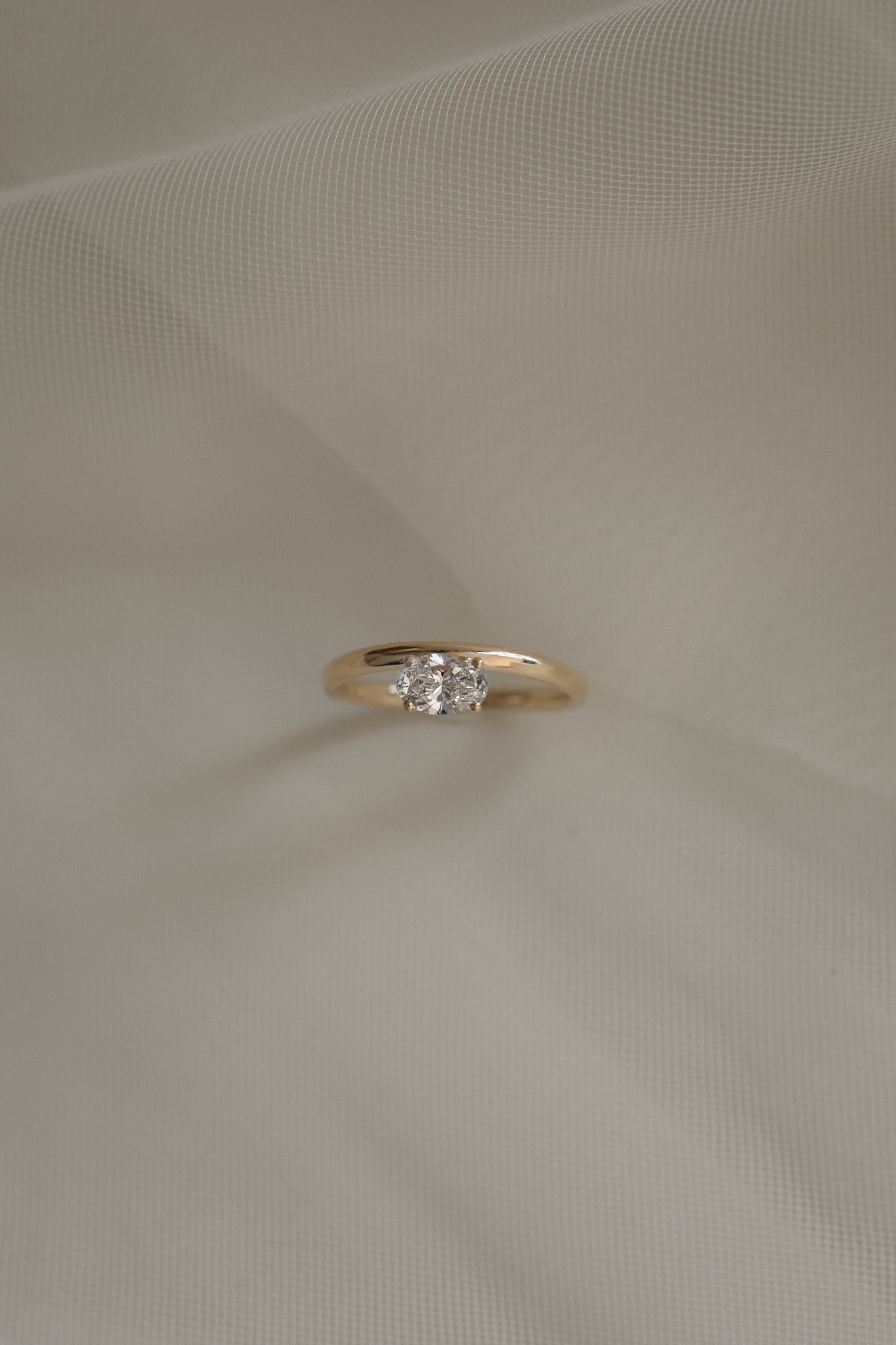 An elegant oval diamond pinky ring crafted in 18K recycled gold. Minimal, refined, and made with an ethical lab-grown diamond for lasting brilliance.