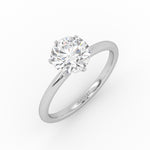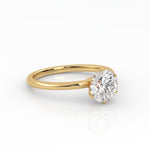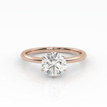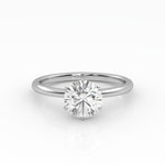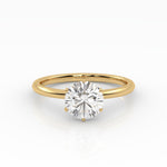 The Six Prong Solitaire diamond engagement ring symbolizes timeless love. Handcrafted in 18k recycled gold, it features a round lab-grown diamond set high in a secure six prong setting, enhancing its brilliance from every angle.