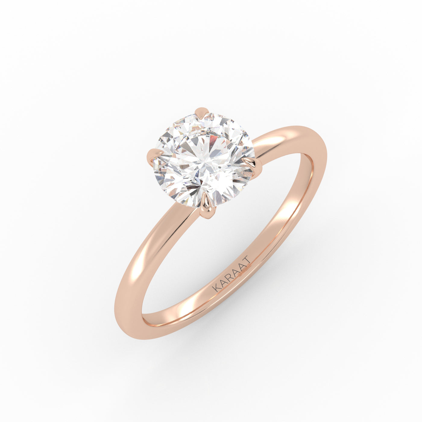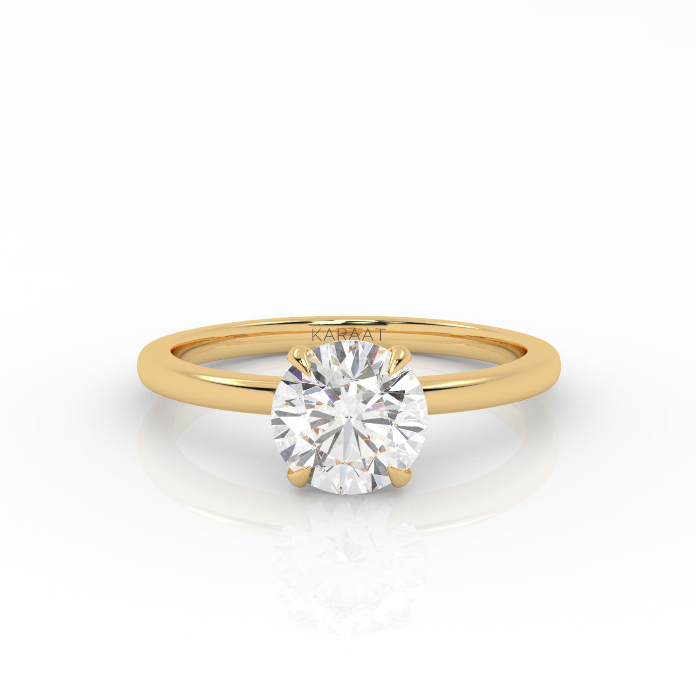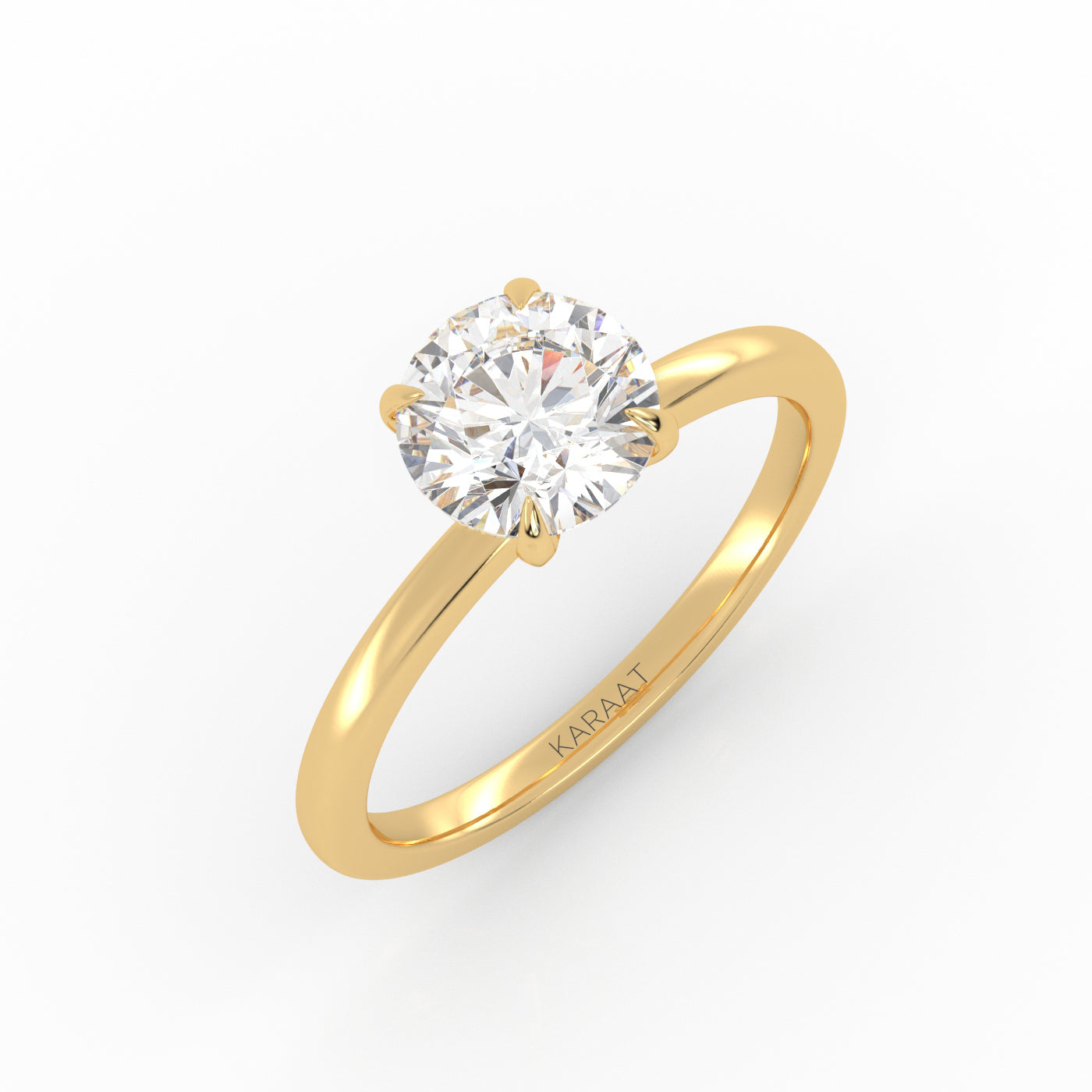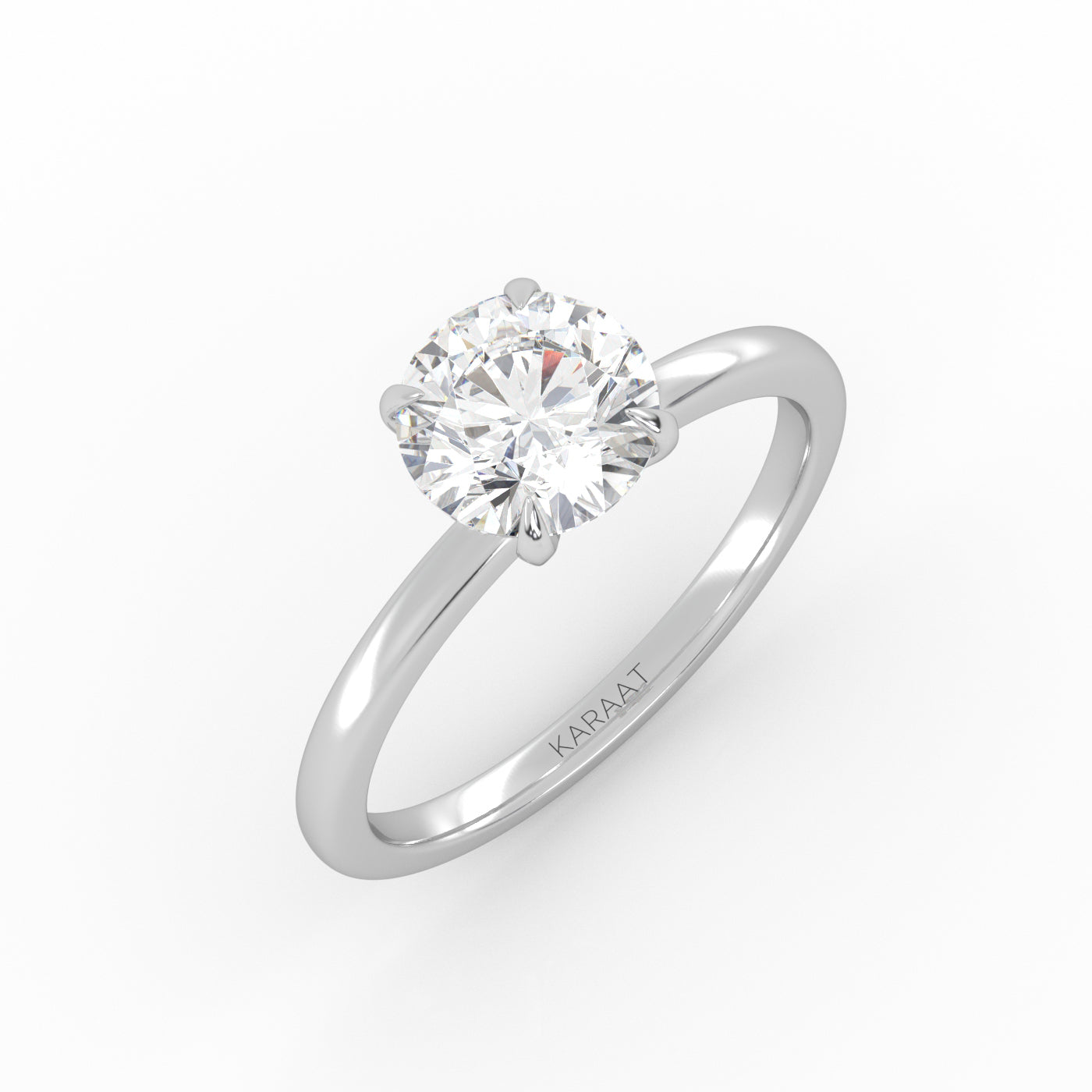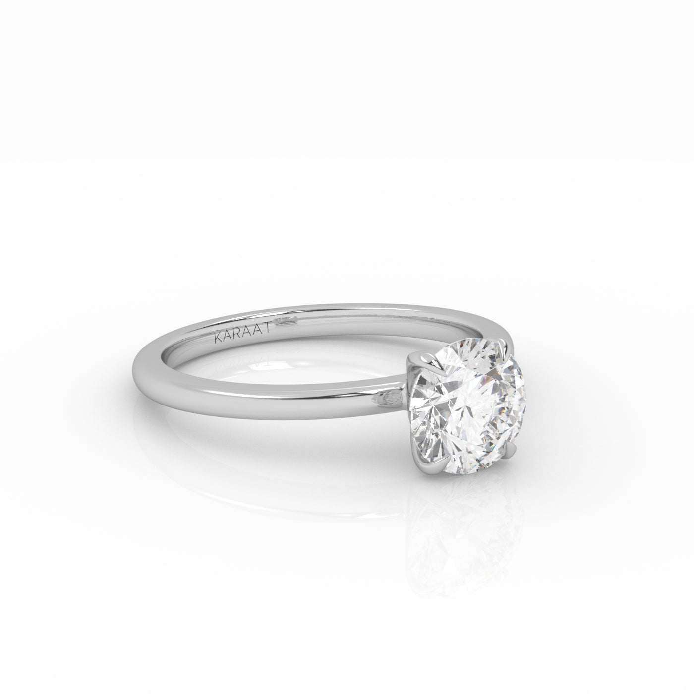 The Round Solitaire diamond ring embodies timeless elegance. Designed to maximize light, the sustainably created round-cut diamond is set high for stunning brilliance.